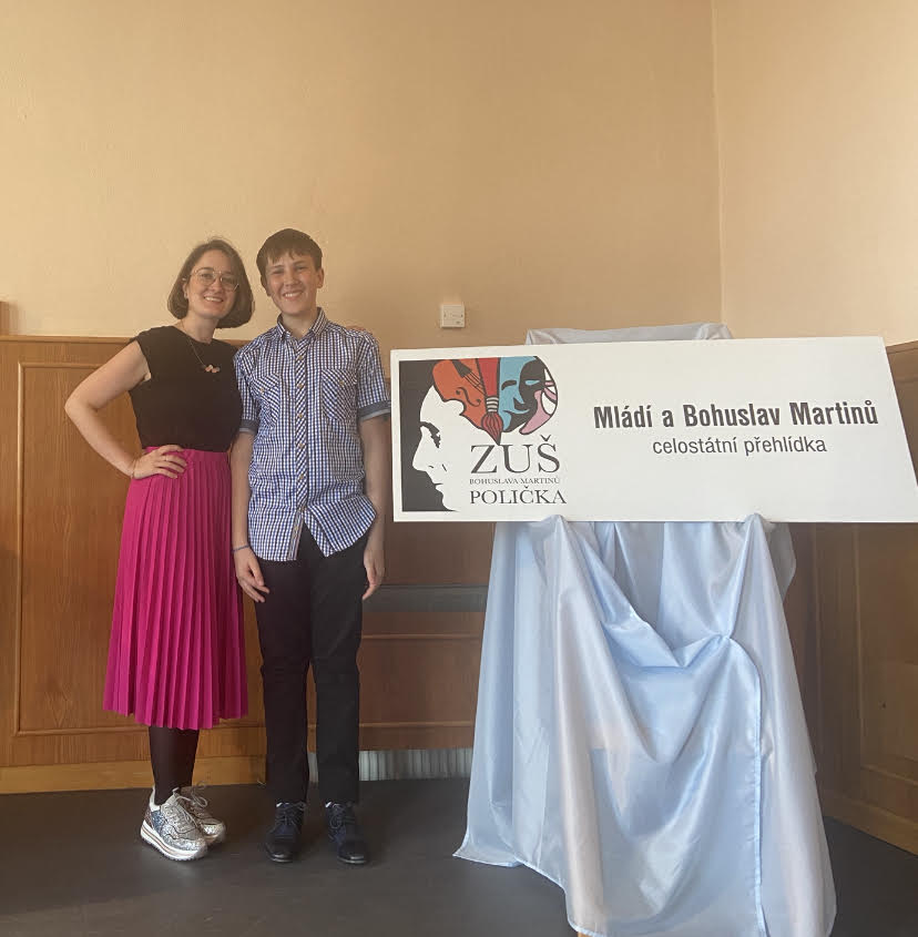 25. – 27. dubna 2023 proběhl v Poličce již 13. ročník celostátní přehlídky s názvem „Mládí a Bohuslav Martinů“. Naší školu zde reprezentoval mladý houslista Jan Františák ze třídy paní učitelky Marty Bystroňové, kterého podpořila klavírním doprovodem paní učitelka MgA. Kateřina Ondrušíková. Honzík se umístil ve zlatém pásmu. Všem třem moc gratulujeme a děkujeme za reprezentaci!