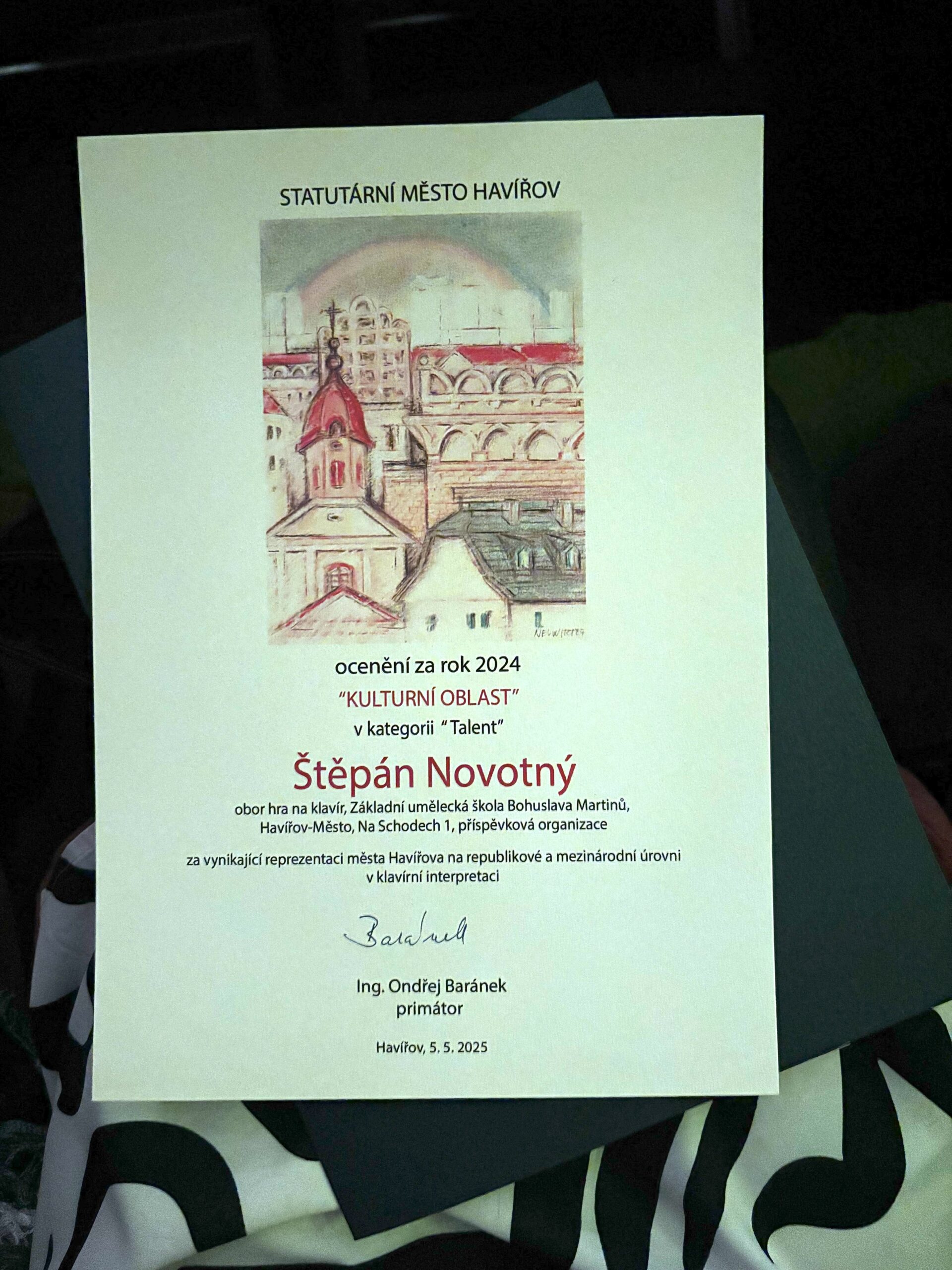 V pondělí 5. května 2025 proběhl v Kulturním domě Leoše Janáčka slavnostní večer spojený s udělováním Cen města Havířova za rok 2024. Mezi oceněnými osobnostmi veřejného života se objevili také dva mimořádně nadaní žáci naší Základní umělecké školy Bohuslava Martinů Havířov.