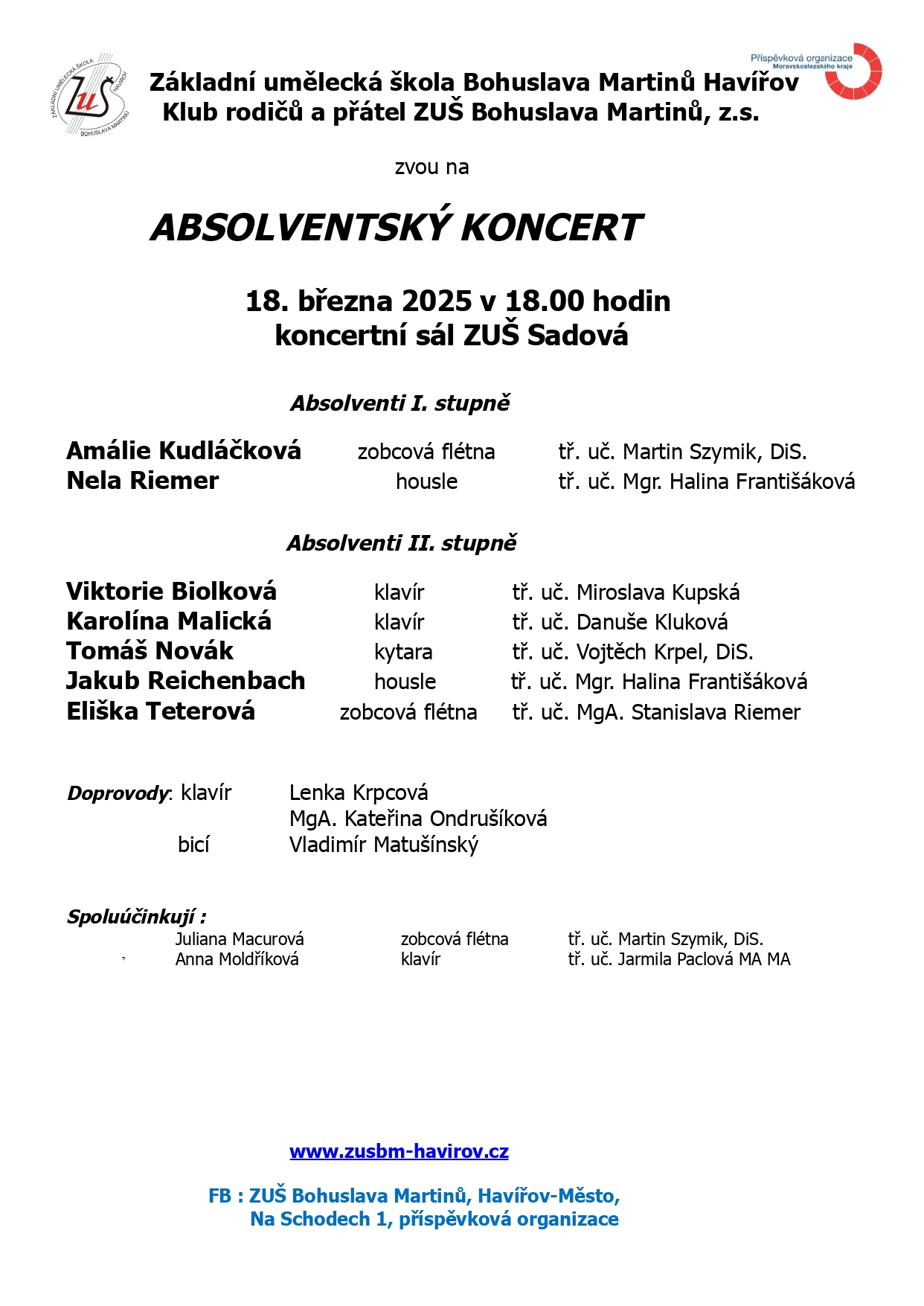 ZUŠ Bohuslava Martinů Havířov je příspěvkovou organizací zřizovanou Moravskoslezským krajem