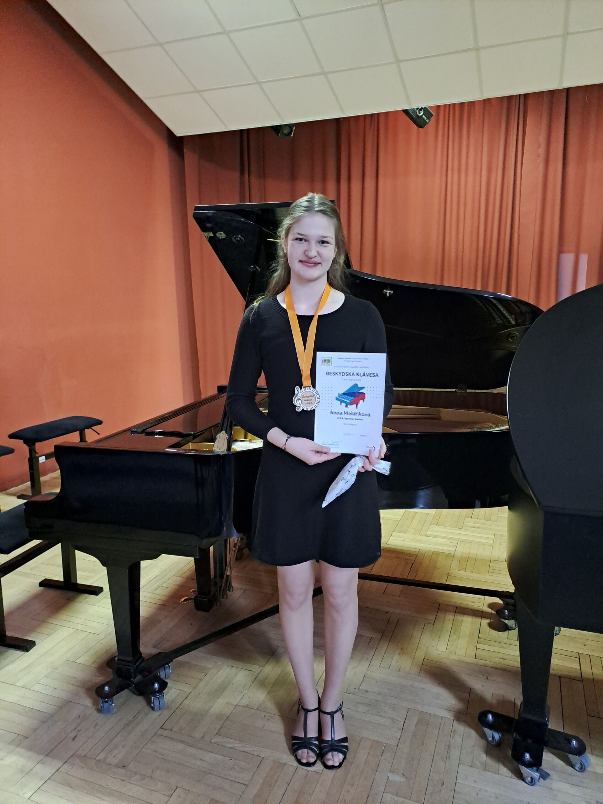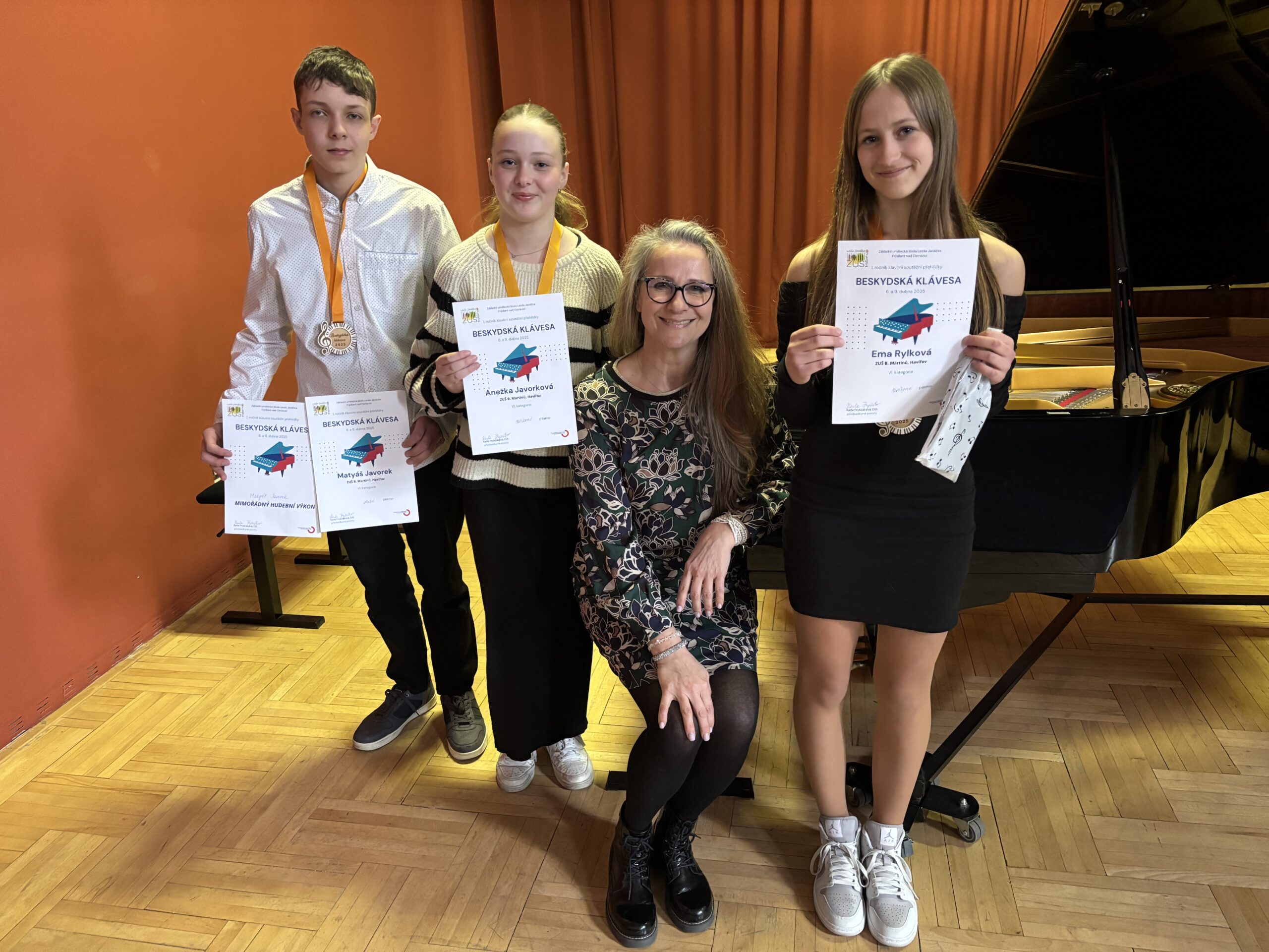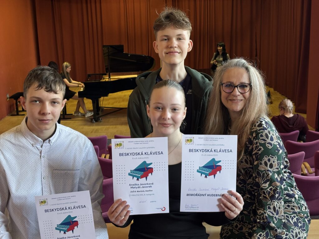 Ve dnech 8. – 9. 4. 2025 se konal historicky 1. ročník klavírní soutěžní přehlídky Beskydská klávesa v ZUŠ Leoše Janáčka ve Frýdlantu nad Ostravicí. Na dvoudenní klání se připravovalo 103 sólových hráčů a 11 komorních seskupení. I naši talentovaní žáci se odvážili vstoupit na neznámou půdu a zahrát si na soutěžním nástroji, který se stal oříškem pro mnohé soutěžící a vyžadoval větší klavírní technickou zdatnost. Organizátoři soutěže přislíbili nový nástroj, což by jistě i pomohlo vyzvednout do budoucna věhlas samotné přehlídky, jelikož organizace byla vynikající, celkové zázemí pro soutěžící bylo taky výborné a nešlo pocítit, že panuje celkově pohodová atmosféra. Což vše dohromady ponechalo velmi příjemný pocit z celé soutěžní přehlídky.