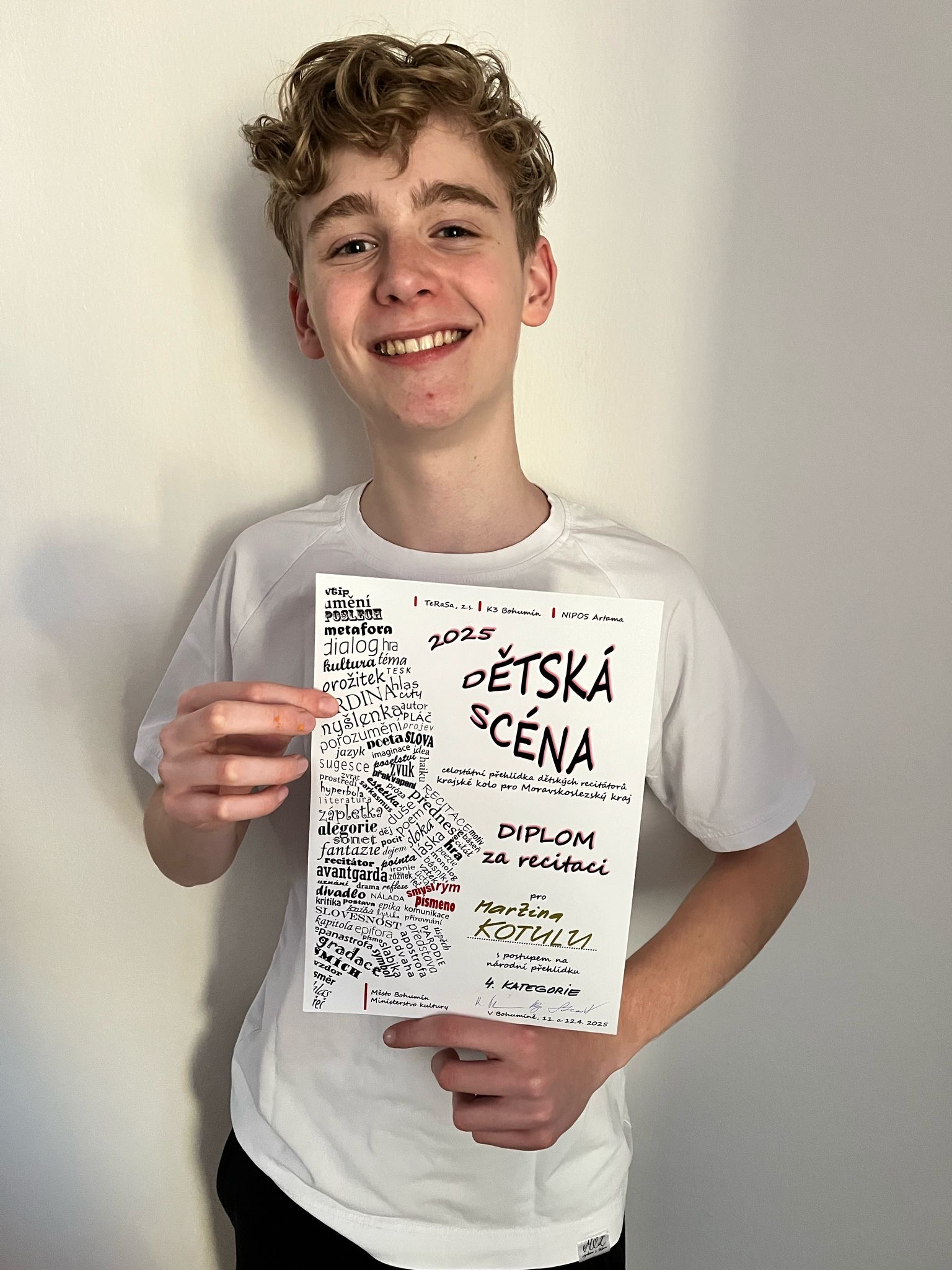 Ve dnech 11. a 12. dubna 2025 se v Bohumíně uskutečnilo krajské kolo recitační soutěže Dětská scéna. Naši školu reprezentovali dva žáci a dosáhli výborných výsledků.