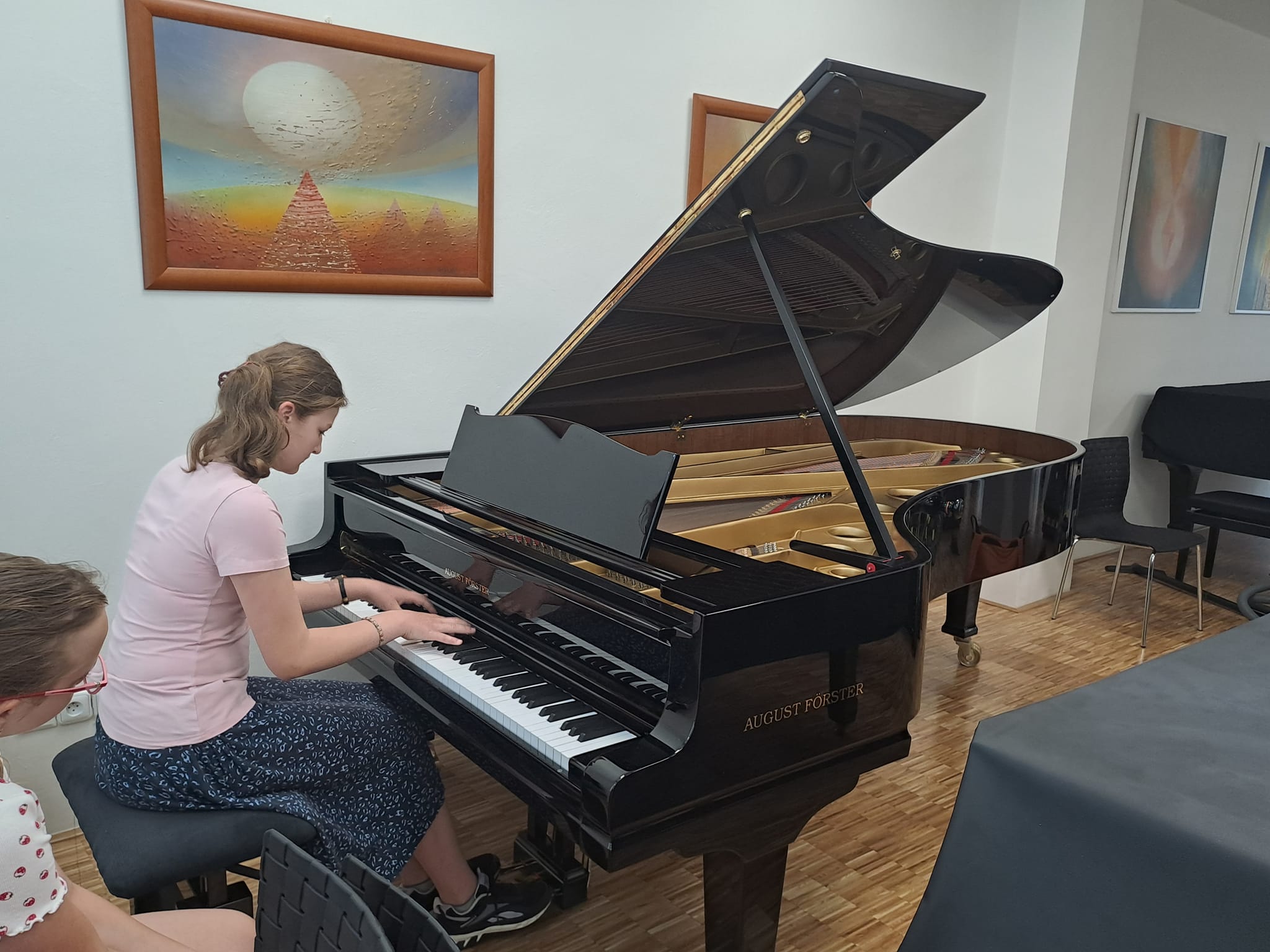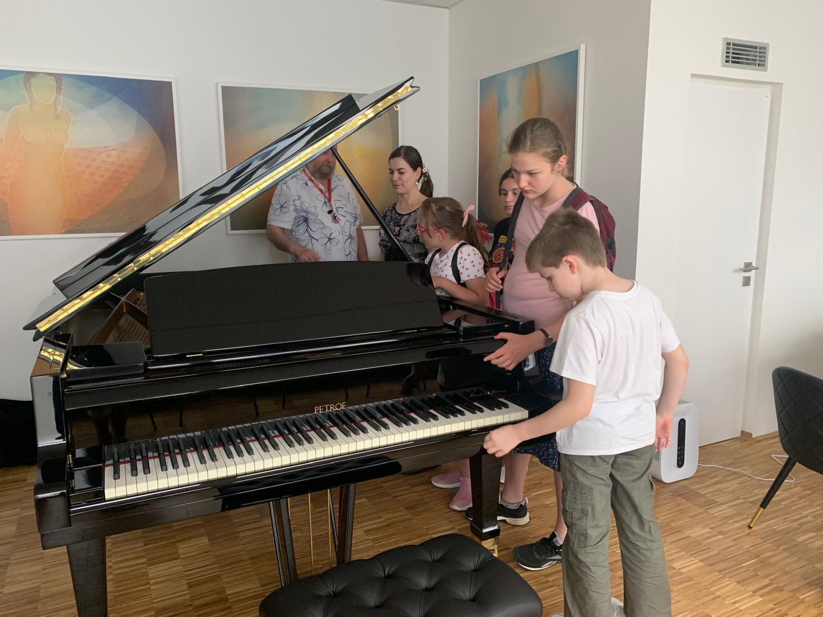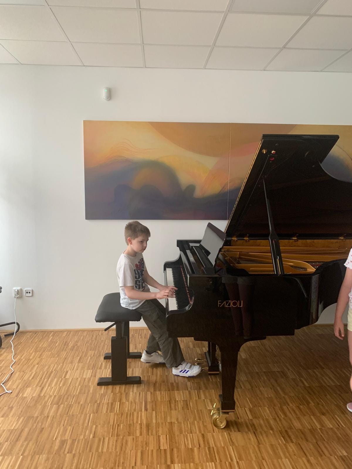 Dnes 30. května zavítali naši mladí pianisté do „klavírního ráje“. Navštívili klavírní salón Pianotéka v Ostravě, kde si mohli zahrát na špičkové nástroje světových značek koncertních řad jako Steinway&Sons, Burger&Jacobi, Fazioli, Petrof, A. Förster aj. a porovnat jejich zvukové, hmatové a vizuální rozdíly. Právě tento den dorazil i proslulý klavír firmy Petrof z řady imperial, který disponuje rozsahem 92 kláves, tedy až po subkontra F, který váží okolo 700kg. Žáci se dověděli něco o rozdílech ve stavbě klavírů různých značek, zažili ladění a pulírování vystavených exponátů. Vystavené obrazy mistra Antonína Gavlase dotvářejí v místě kouzelnou atmosféru a umocňují tak zážitek z hudby. Děkujeme panu Zdeňkovi Matúškovi za pozvání.