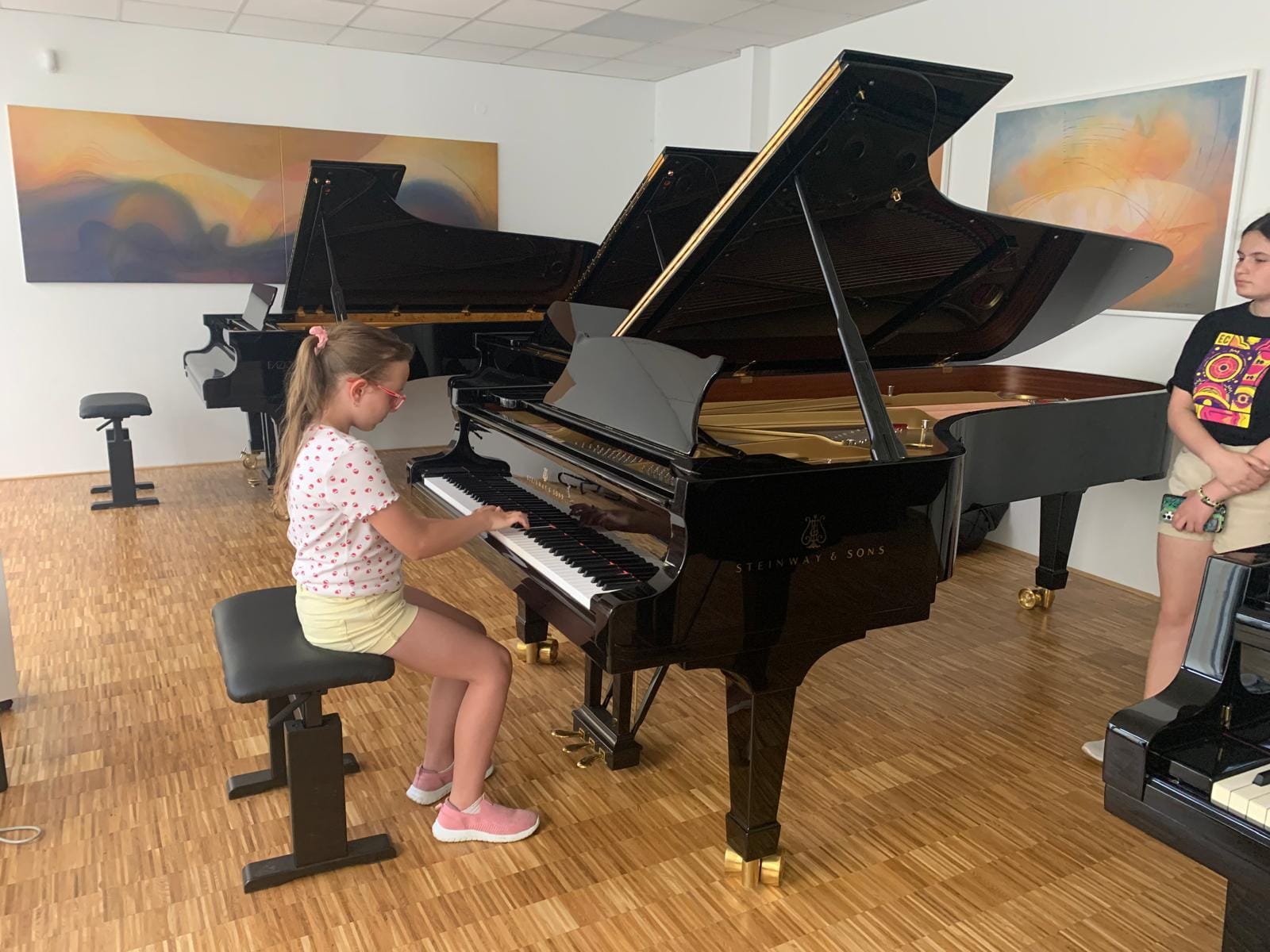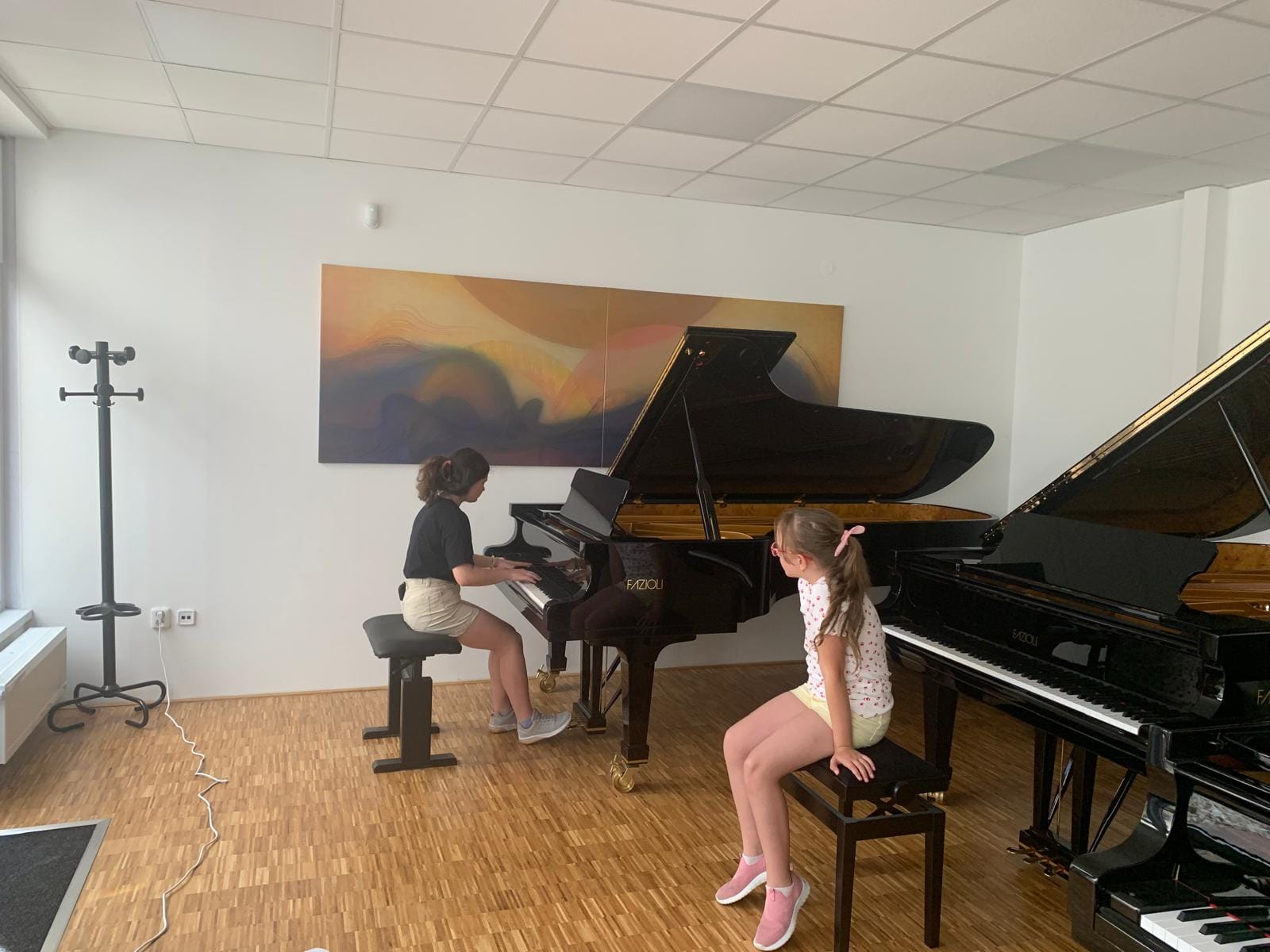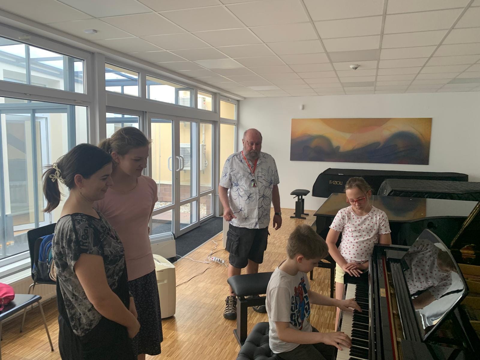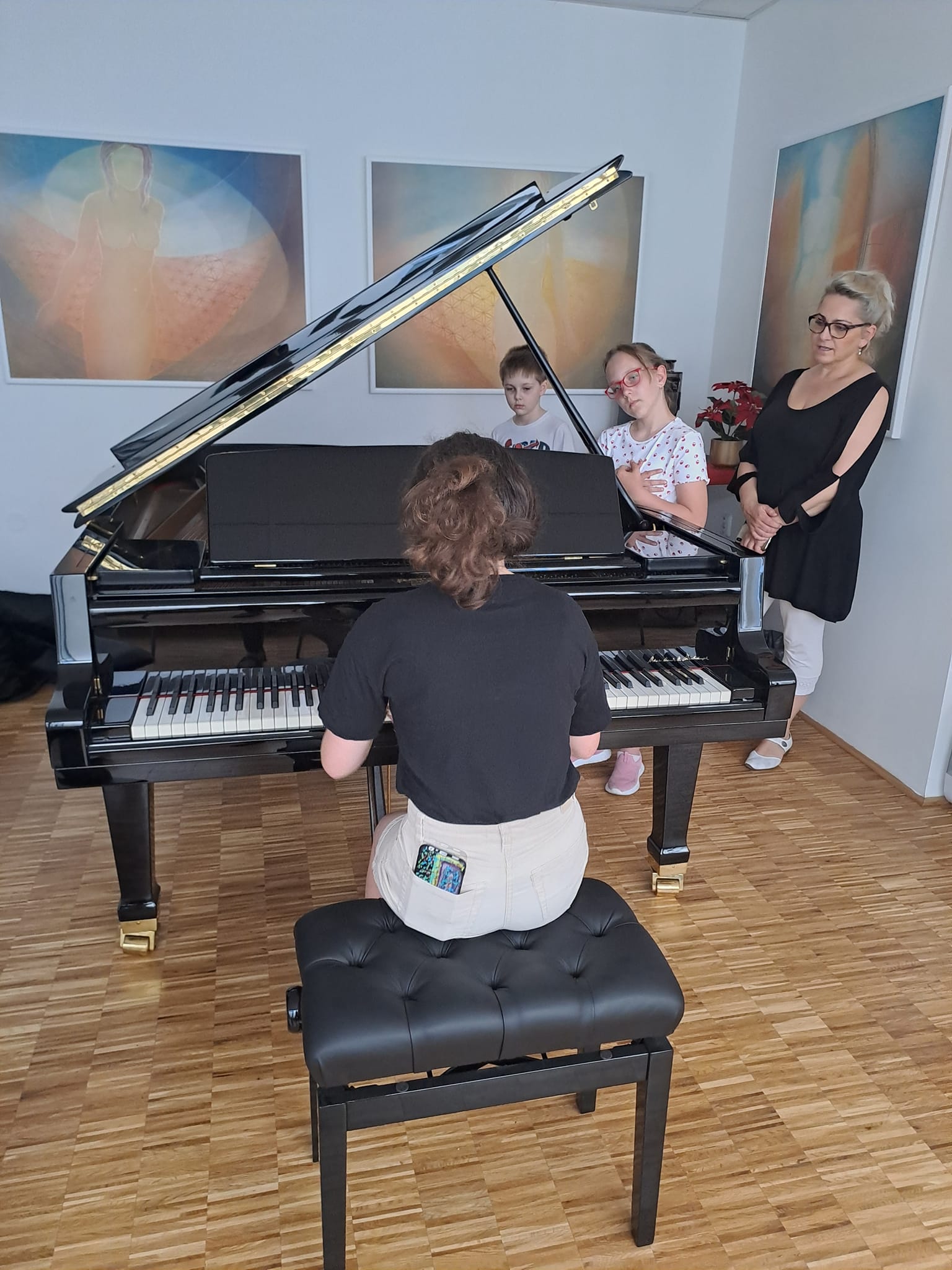 Dnes 30. května zavítali naši mladí pianisté do „klavírního ráje“. Navštívili klavírní salón Pianotéka v Ostravě, kde si mohli zahrát na špičkové nástroje světových značek koncertních řad jako Steinway&Sons, Burger&Jacobi, Fazioli, Petrof, A. Förster aj. a porovnat jejich zvukové, hmatové a vizuální rozdíly. Právě tento den dorazil i proslulý klavír firmy Petrof z řady imperial, který disponuje rozsahem 92 kláves, tedy až po subkontra F, který váží okolo 700kg. Žáci se dověděli něco o rozdílech ve stavbě klavírů různých značek, zažili ladění a pulírování vystavených exponátů. Vystavené obrazy mistra Antonína Gavlase dotvářejí v místě kouzelnou atmosféru a umocňují tak zážitek z hudby. Děkujeme panu Zdeňkovi Matúškovi za pozvání.