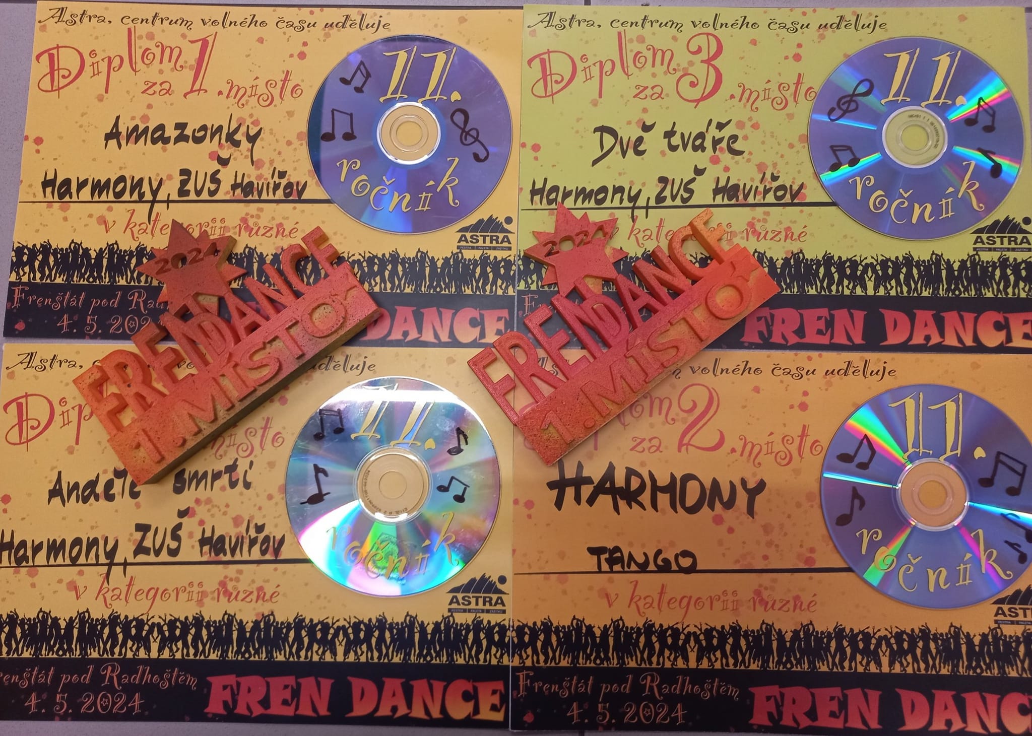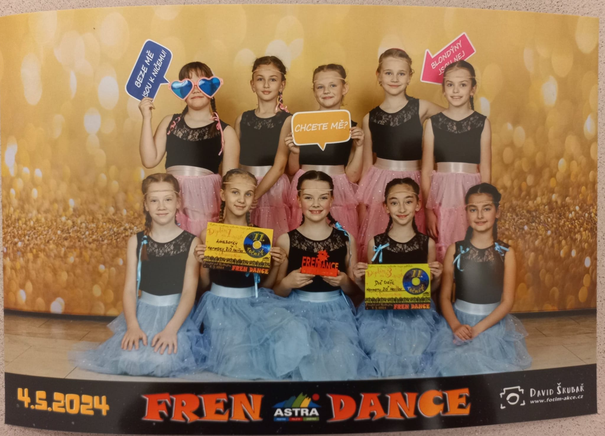 Blahopřejeme tanečnicím a jejich paní učitelce Petře Sejkorové za krásná umístění v soutěži FREN DANCE 2024 a děkujeme za vzornou reprezentaci. Paní ekonomce Ing. Martě Palowské za ručně vyrobené módní doplňky ke kostýmům.