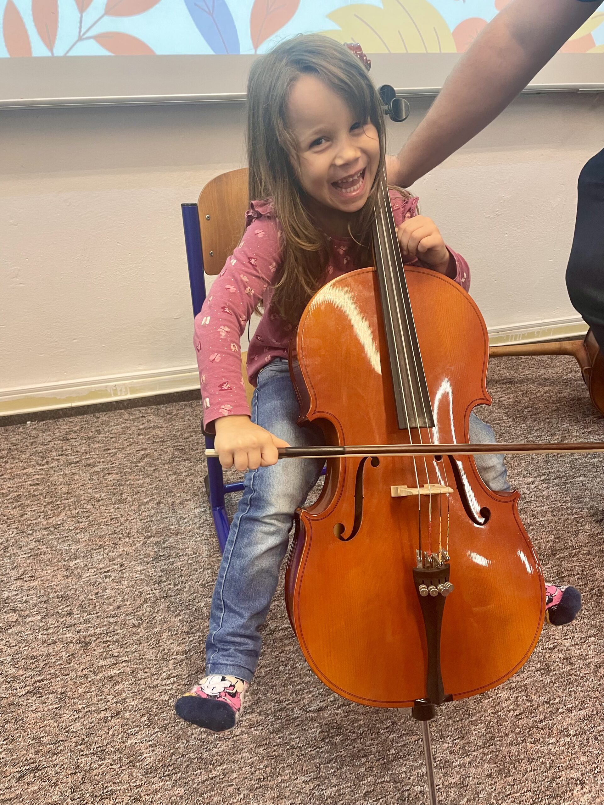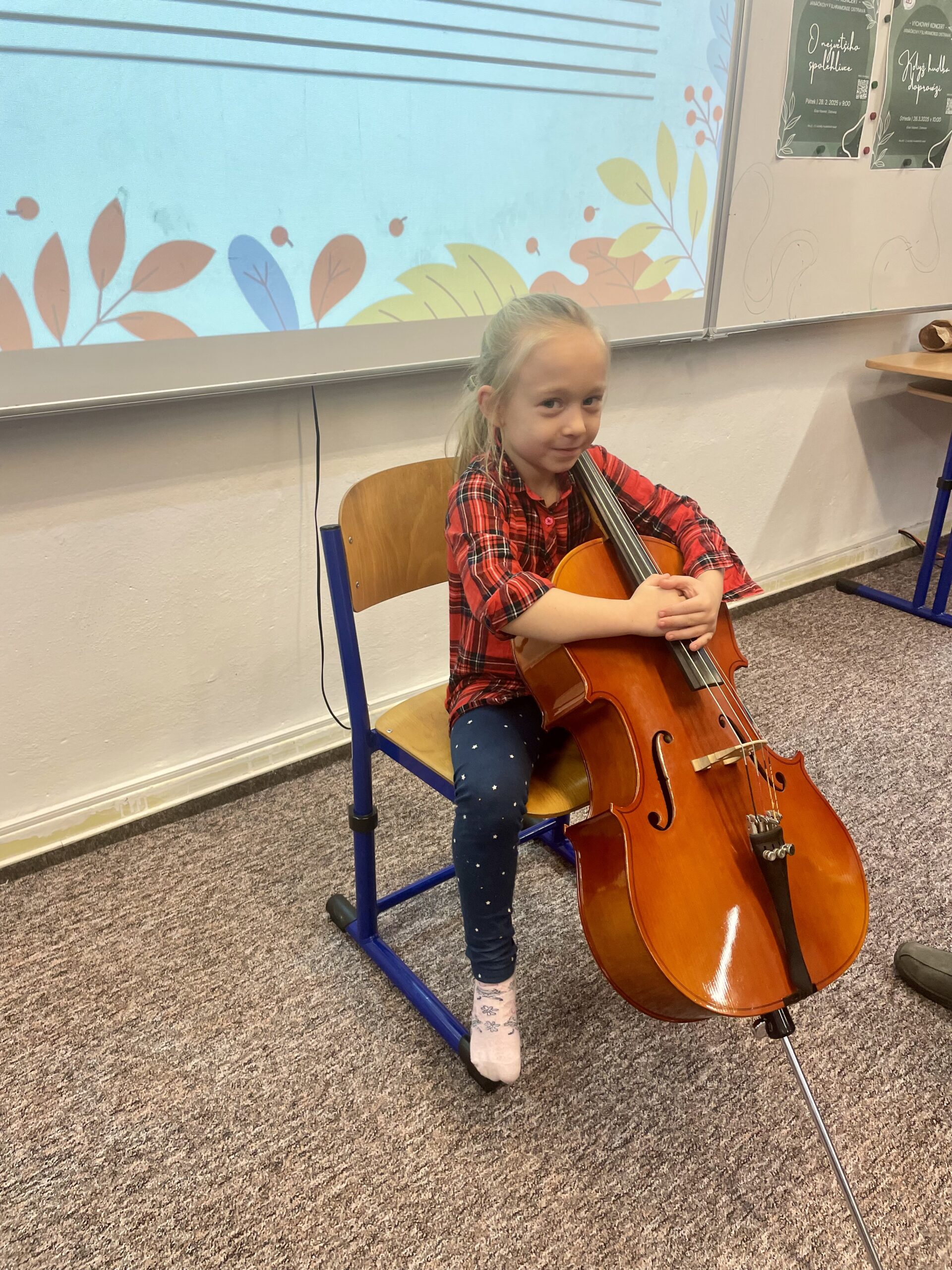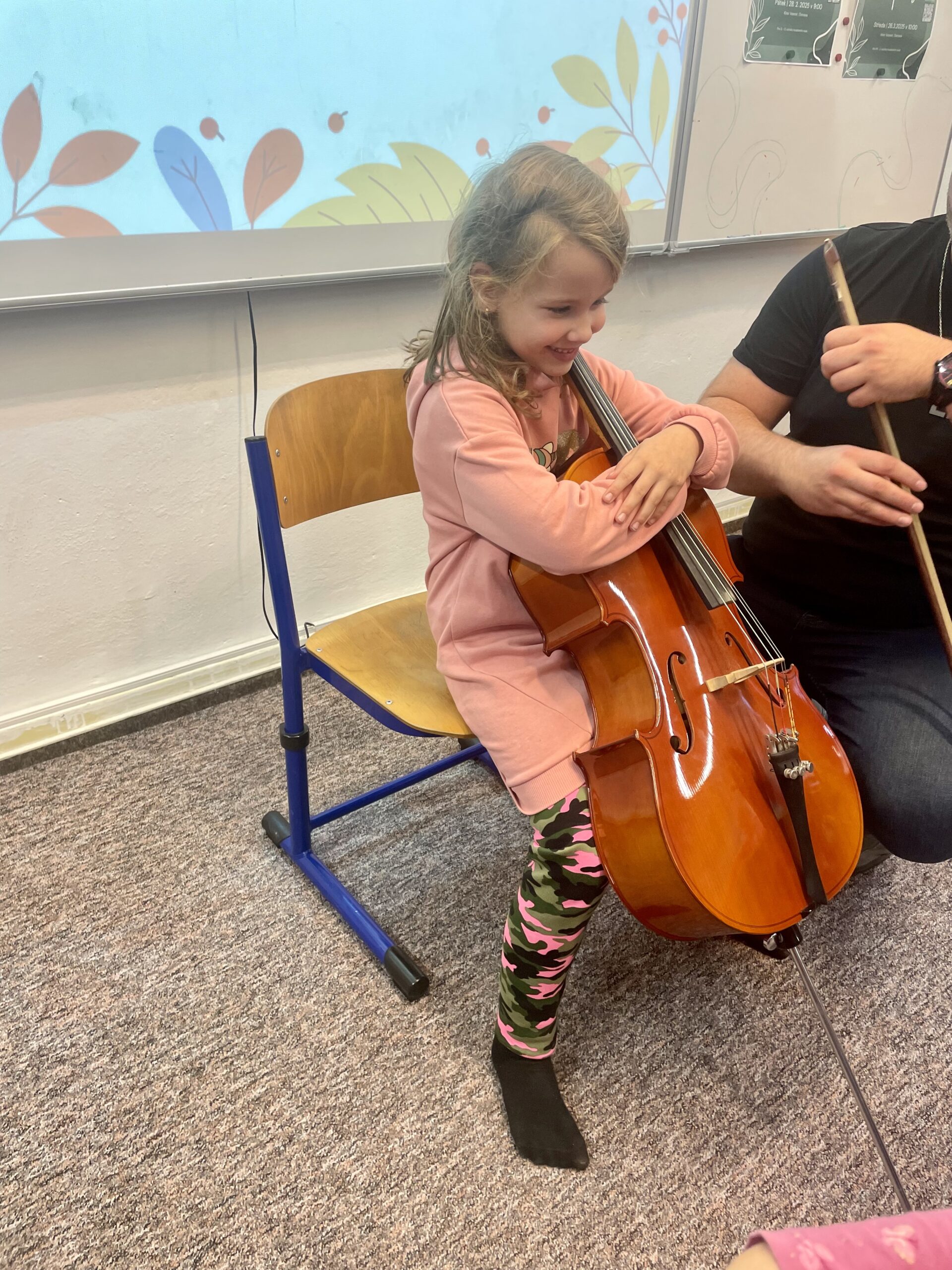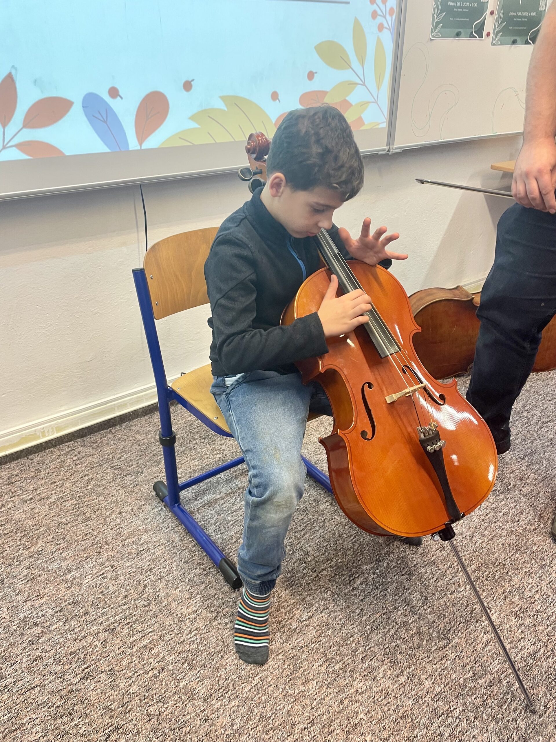 Dne 13.11. navštívil Hudební dílničku náš kolega BcA. Martin Schubert s violoncellem. Žáčci se seznámili s nástrojem, popsali si jednotlivé části, a zjistili, že violoncello má hlavu, tělo i duši jako my. Nakonec si hraní na violoncello vyzkoušeli a všem se tento nástroj moc líbil. Moc děkujeme panu učiteli za zábavnou a pestrou hodinu!