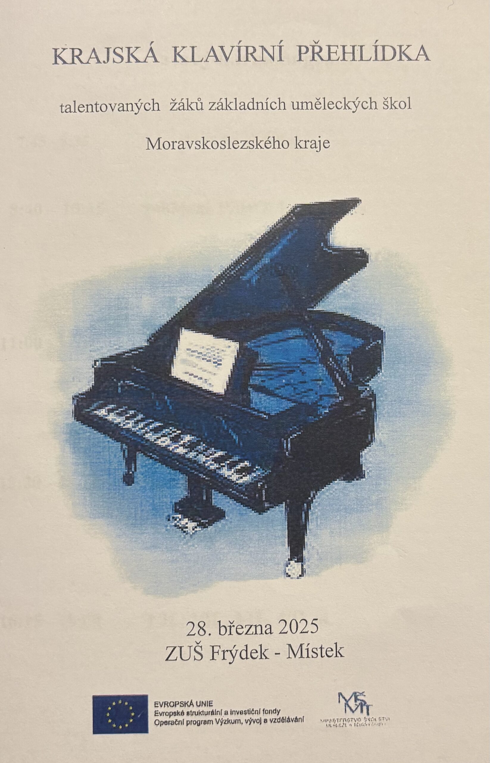Dne 28. března se konala krajská klavírní přehlídka na ZUŠ ve Frýdku-Místku, která se stala již tradiční v roce nekonajících se soutěží MŠMT. Celkem se klavírní přehlídky zúčastnilo 85 žáků z celého Moravskoslezského kraje napříč šesti okresy – Ostrava, Karviná, Opava, Frýdek – Místek, Bruntál a Nový Jičín. Nejmladší byl žák přípravného studia, nejstarší pak absolventi – žáci 4. ročníku druhého stupně.