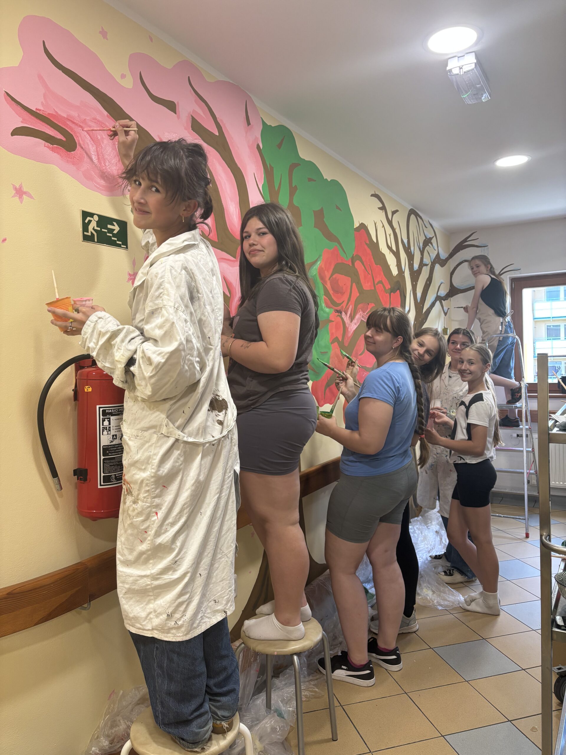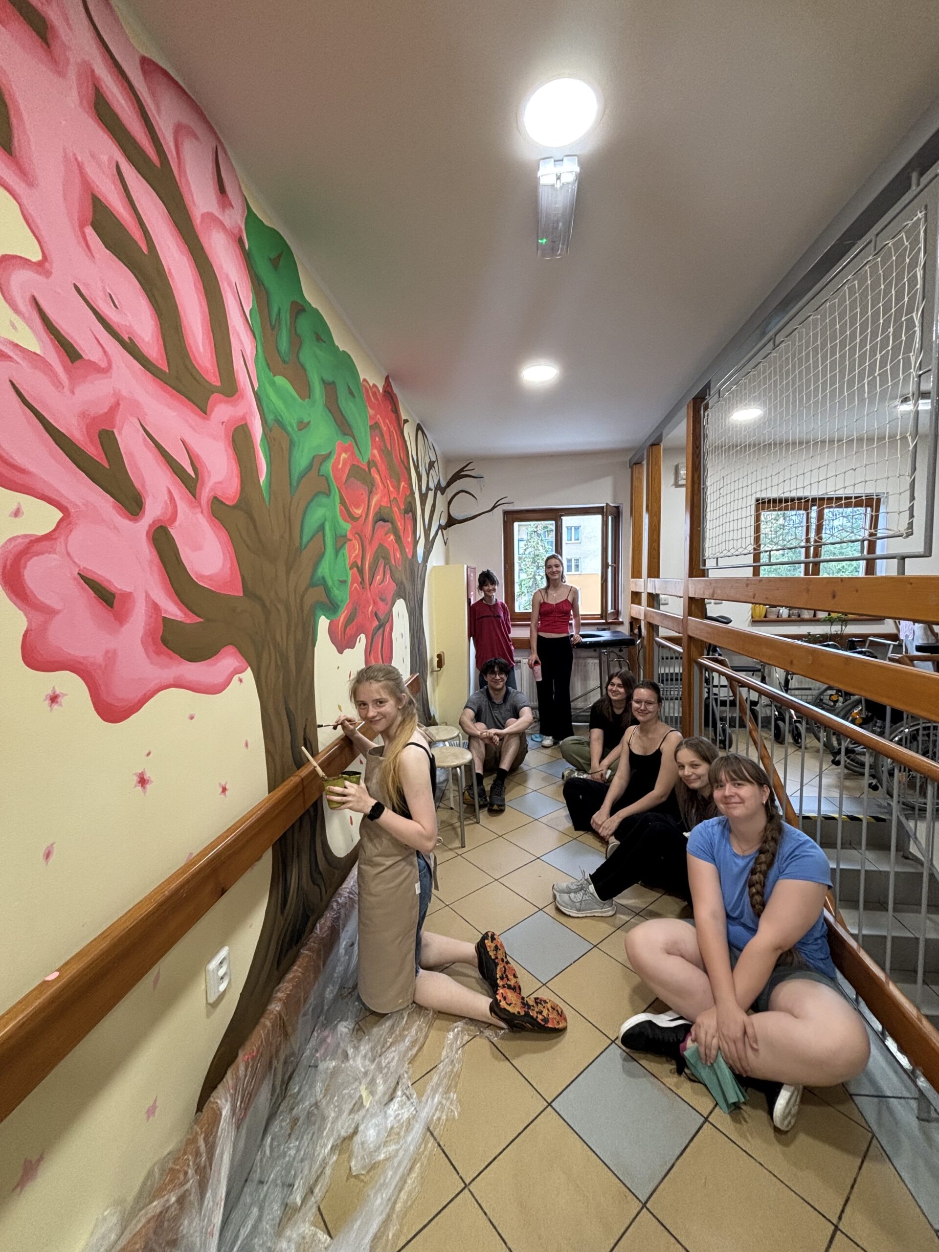 Vzniklo krásné a barevné dílo, které věříme, že bude každý den těšit nejen klienty domova ale i jeho návštěvníky. Malba zabrala více než 10 hodin práce, ale žáky to opravdu bavilo – tvořili s chutí, pečlivostí a nadšením. Malba byla zpestřením i pro klienty domova, kteří se během tvoření chodili na malbu dívat a někteří sami zavzpomínali na svá období, kdy se rovněž věnovali malbě.