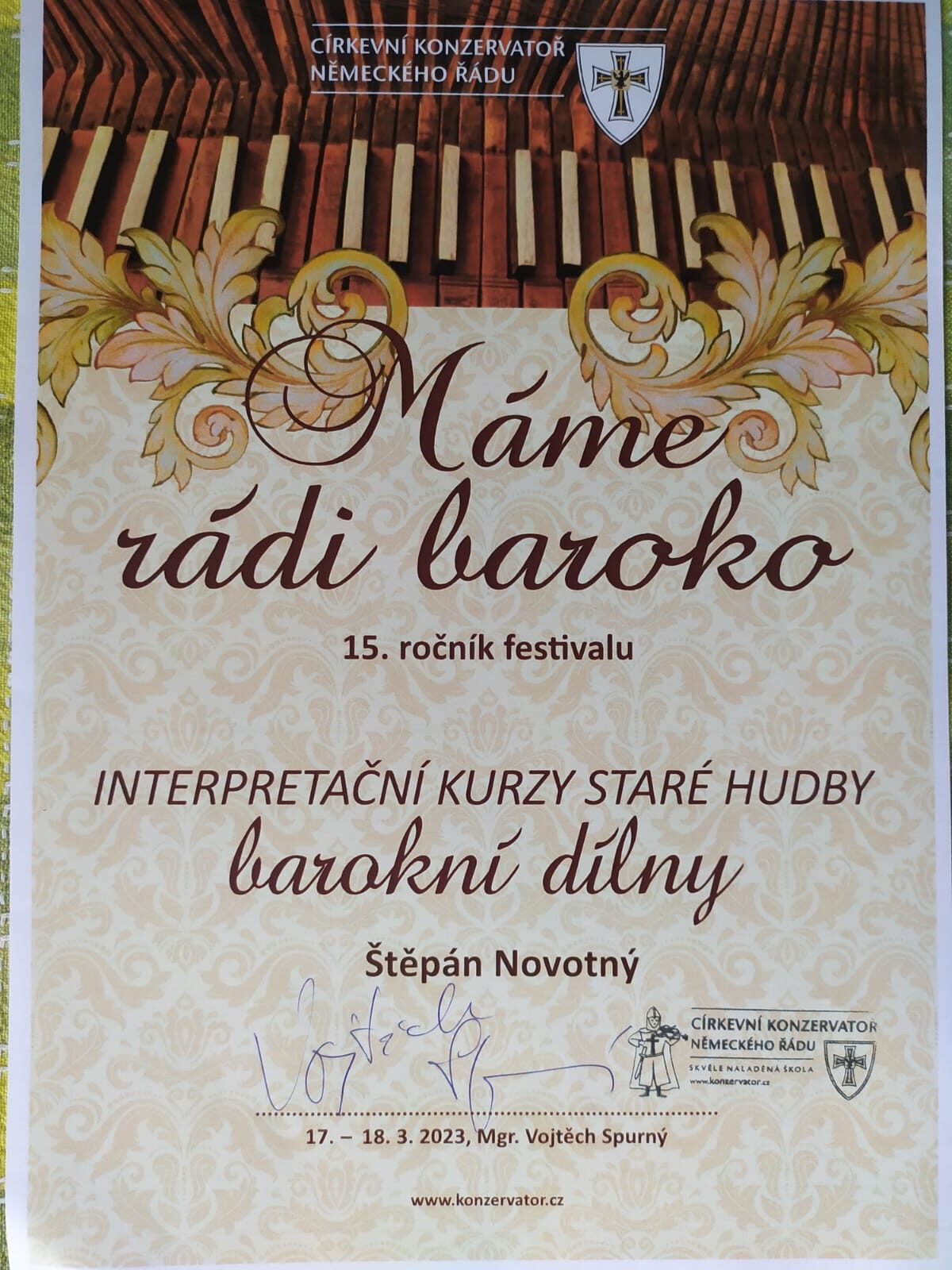 Dne 16.3.2023 (o jarních prázdninách) se za naši školu zúčastnila paní uč. Oldřiška Honsová se svým žákem Štěpánem Novotným, který využil i příležitost absolvovat interpretační seminář – barokní dílnu klávesových nástrojů pod vedením dirigenta, cembalisty, odborníka na barokní díla – MgA. Vojtěcha Spurného. Tyto semináře jsou určeny pro interprety, jež hlouběji a podrobněji nahlížejí a propracovávají díla barokních mistrů.