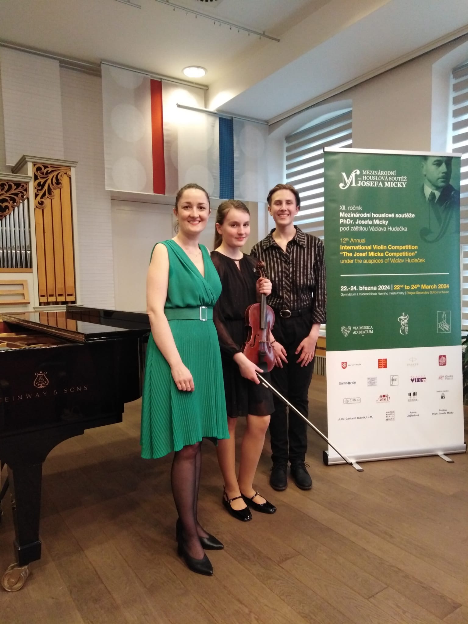 Ve dnech 22. – 24. března proběhl v Praze 12. ročník Mezinárodní houslové soutěže PhDr. Josefa Micky pod záštitou Václava Hudečka. Této prestižní soutěže se zúčastnili naši žáci Jan Františák a Helena Hampalová ze třídy paní učitelky Marty Bystroňové. Oba bojovali ve IV. kategorii a umístili se na krásném 2. místě (Jan Františák) a 3. místě (Helena Hampalová). Klavírní podporou byla jako vždy úžasná paní učitelka MgA. Kateřina Ondrušíková. Ke krásným výsledkům moc gratulujeme!