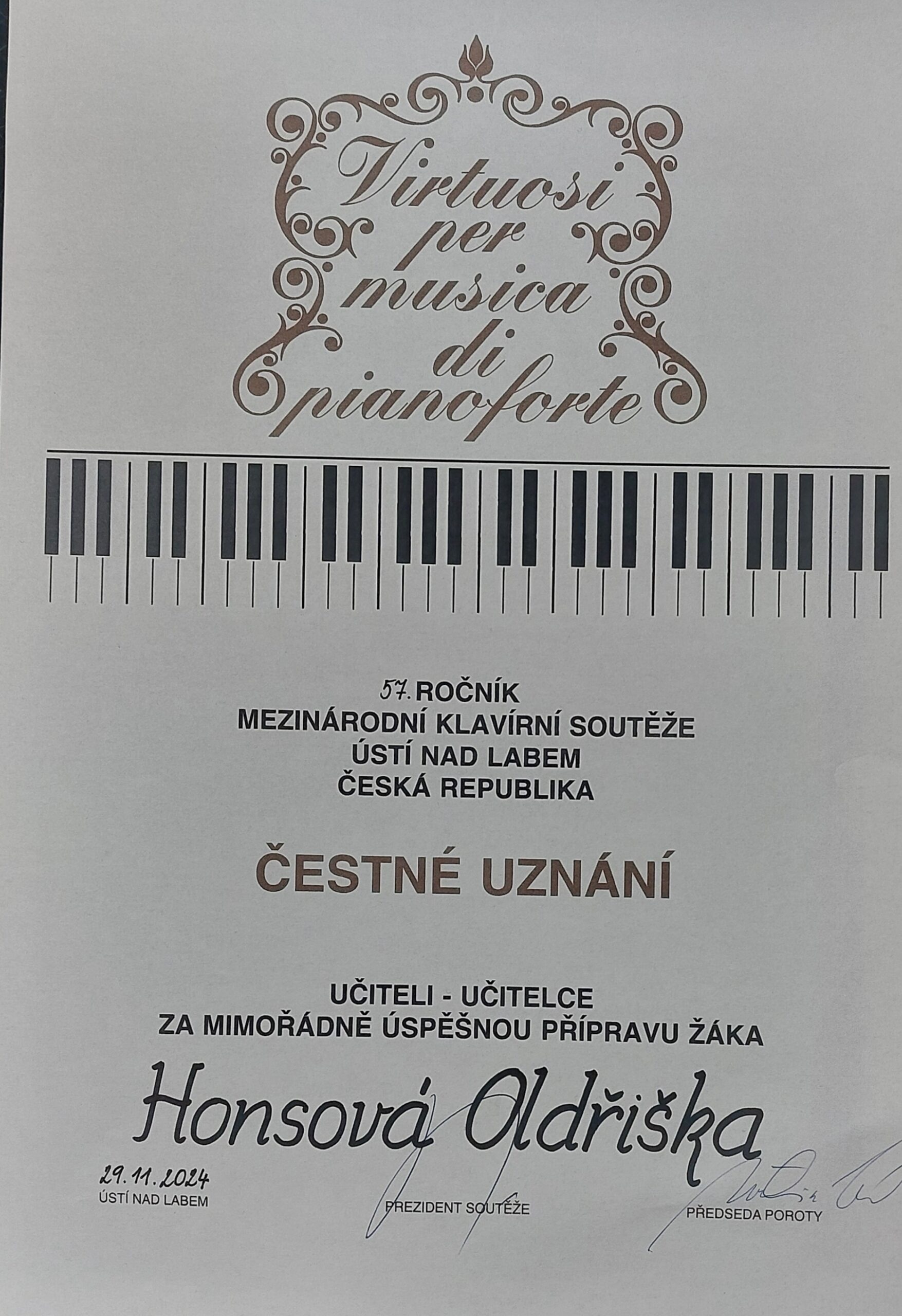 Letošního 57. ročníku se opět po létech rozhodla Oldřiška Honsová zúčastnit se svým velmi talentovaným žákem Štěpánem Novotným. Ve své kategorii měl Štěpán pár skvělých českých spolubojovníků i také vynikající klavíristy ze Srbska, Ukrajiny, Slovenska a Mongolska. Nejen že soupeřil s úžasnými klavíristy, ale také bojoval s nemocí a horečkami před odjezdem a po postupu do 2. kola. Díky jeho obrovského talentu s houževnatým odhodláním a láskou k hudbě, získal obdivuhodné 3. místo v této náročné soutěži.