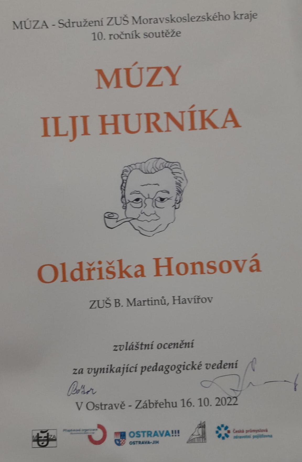Od poroty získaly obě vyučující Z. Gajanová a O. Honsová „Zvláštní ocenění za vynikající pedagogické vedeni“. Všem oceněným, korepetitorkám a vyučujícím srdečně blahopřejeme a děkujeme za vynikající reprezentaci!