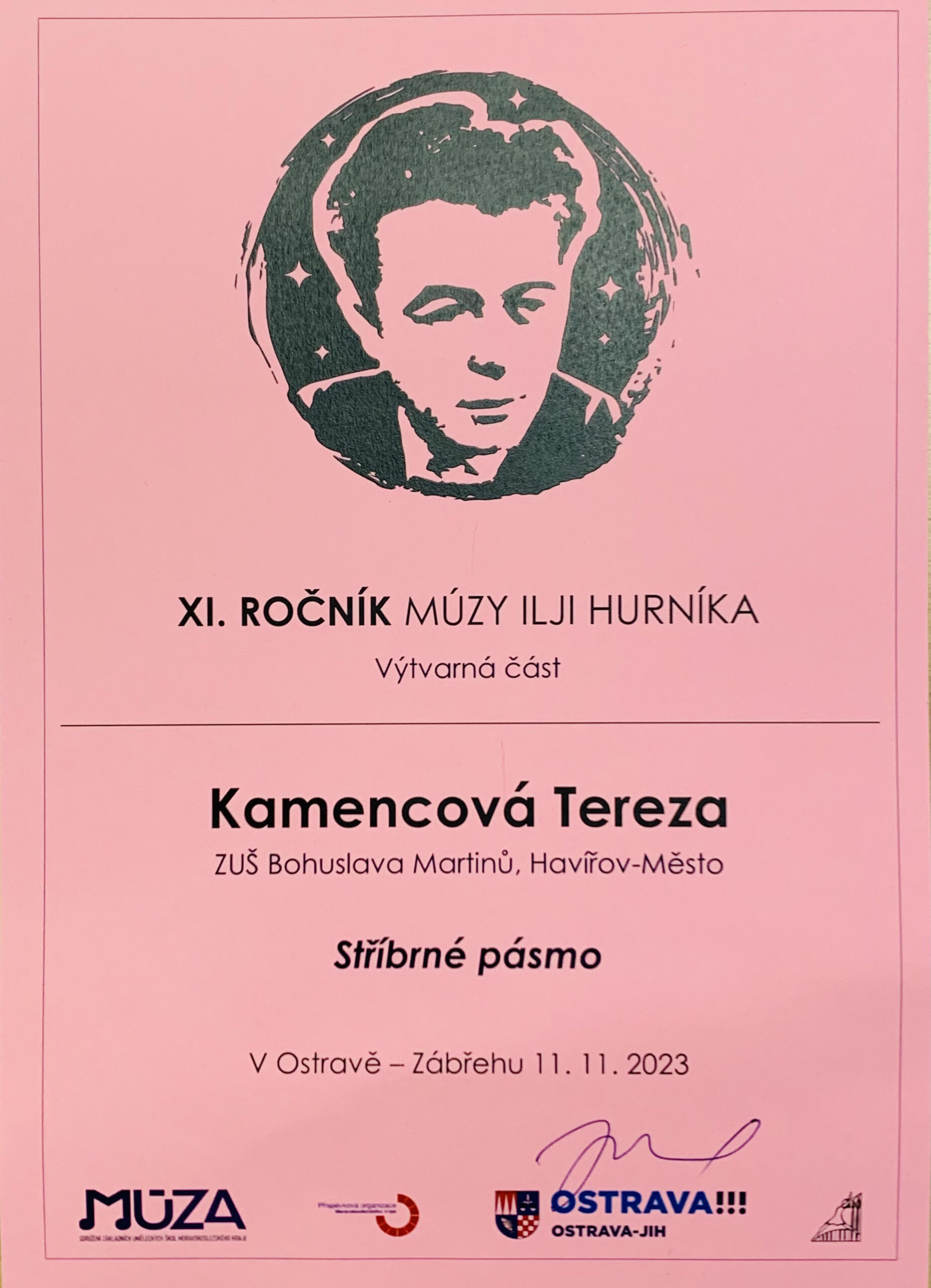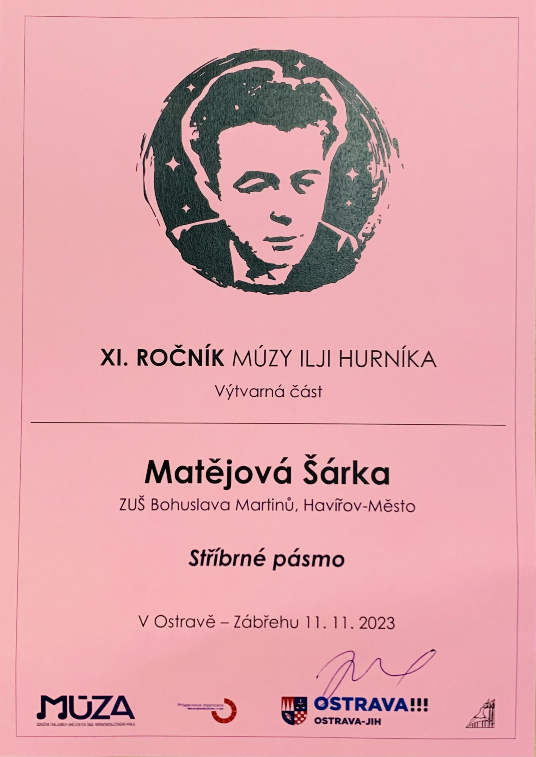 O víkendu 11. a 12. listopadu 2023 proběhl na ZUŠ Ostrava Zábřeh již XI. ročník hudební přehlídky – Múzy Ilji Hurníka. Naše škola byla zastoupena v hudebním i výtvarném oboru. Naší žáci získali krásná umístění, ocenění byli rovněž někteří pedagogové. Všem žákům i jejich pedagogům gratulujeme a korepetitorům děkujeme za klavírní podporu!