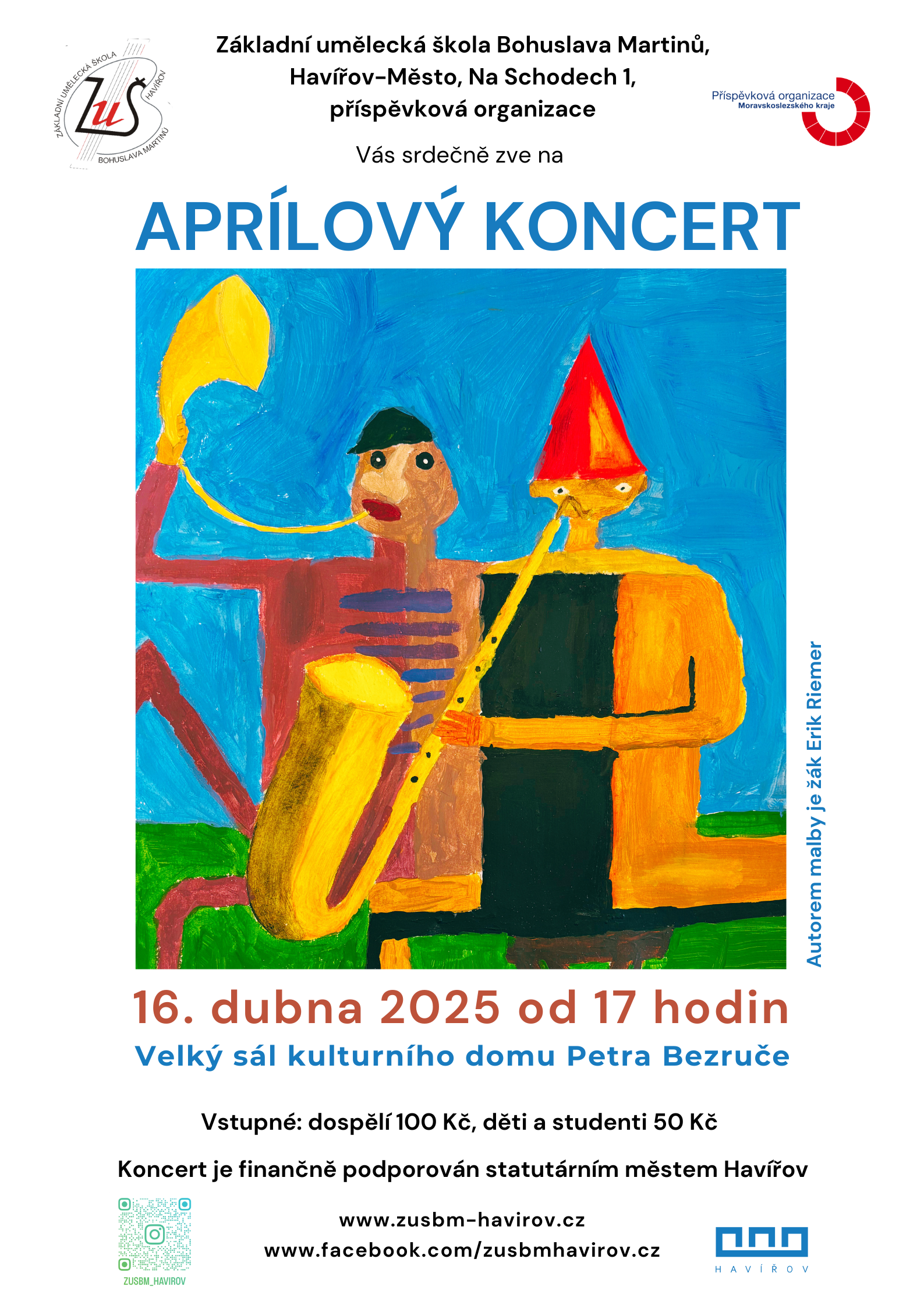 Dne 16. dubna 2025 se v Kulturním domě Petra Bezruče konal Aprílový koncert naší ZUŠ B. Martinů Havířov, na němž žáci všech oddělení opět ukázali svůj talent, nápaditost – a vzhledem k názvu koncertu – i smysl pro humor. Děkujeme všem, kteří se na koncertu podíleli, a těšíme se na další společná setkání. Odkaz na videozáznam: https://www.youtube.com/watch?v=-QI2SRxl78g