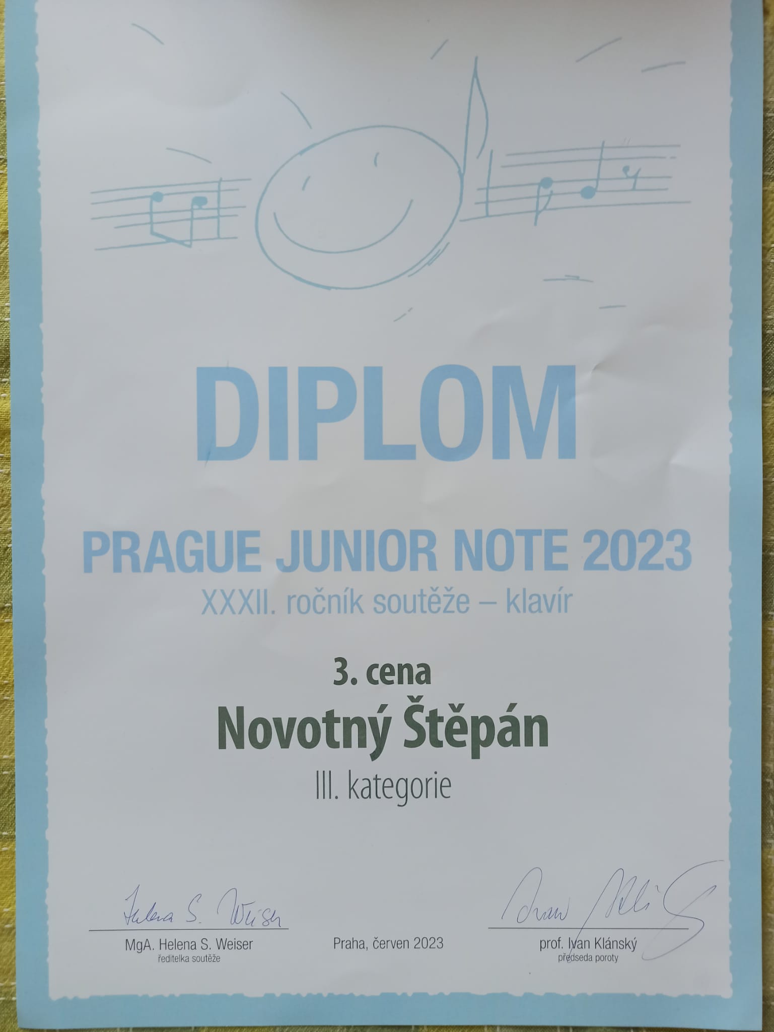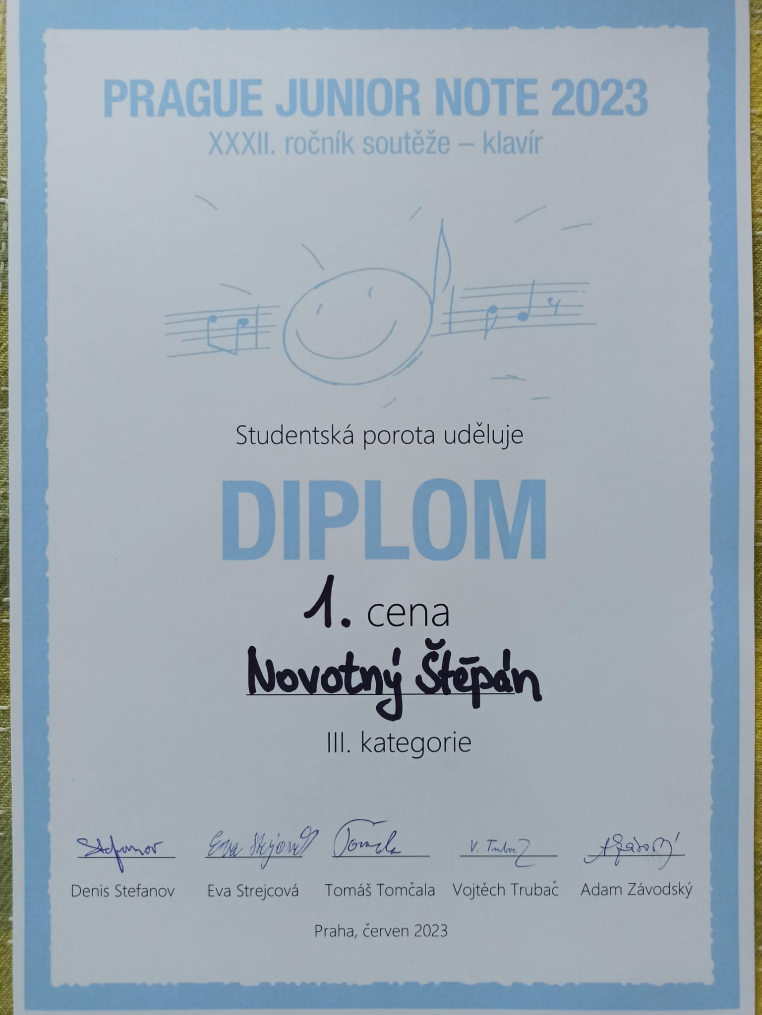 Dne 10. června 2023 se účastnil klavírista Štěpán Novotný sobotního klání 32. ročníku prestižní mezinárodní soutěže Prague Junior Note na HAMU v Praze. Štěpán získal hned dvě rozličná ocenění: