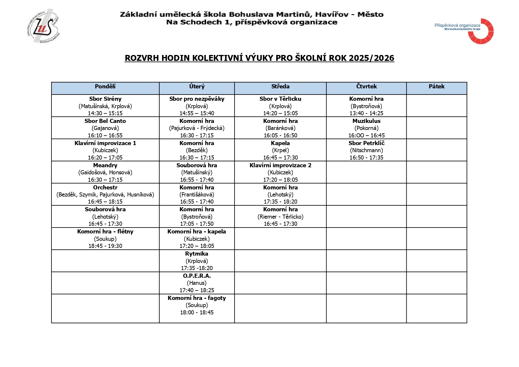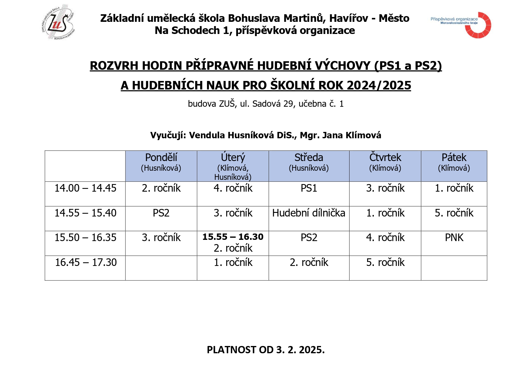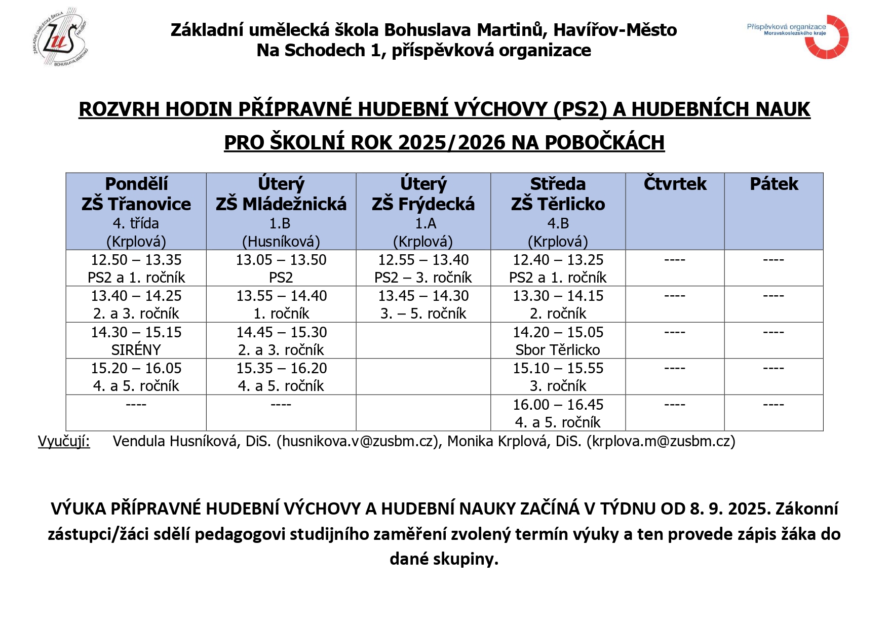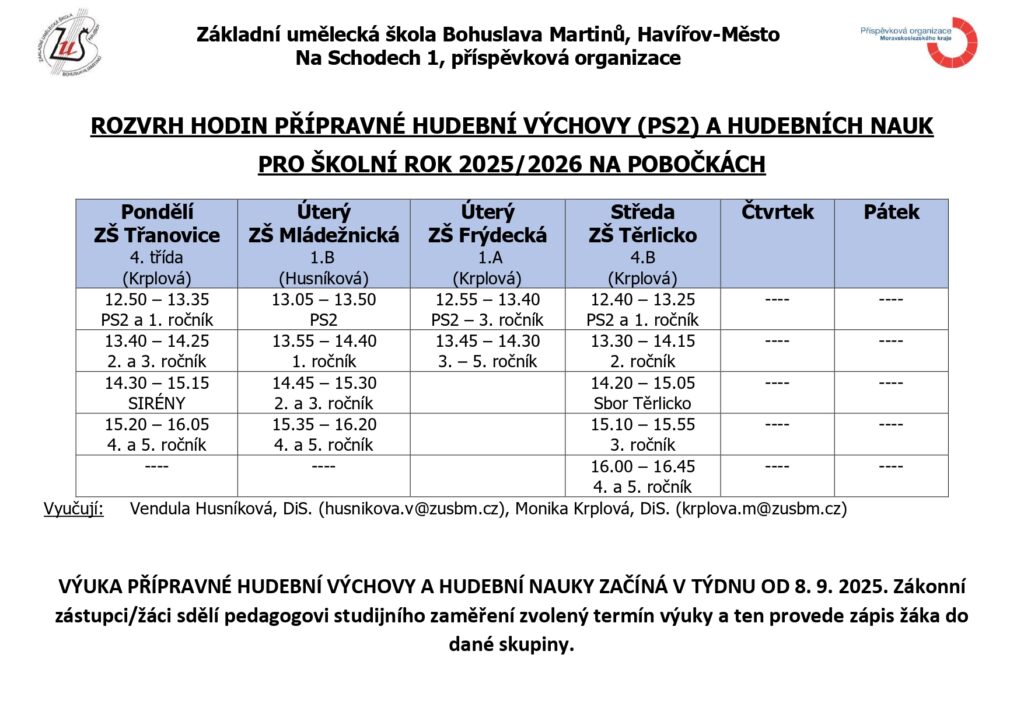 Rozvrh HN a PHV 2025/2026 (ZŠ Mládežnická, Frýdecká, Těrlicko, Třanovice)