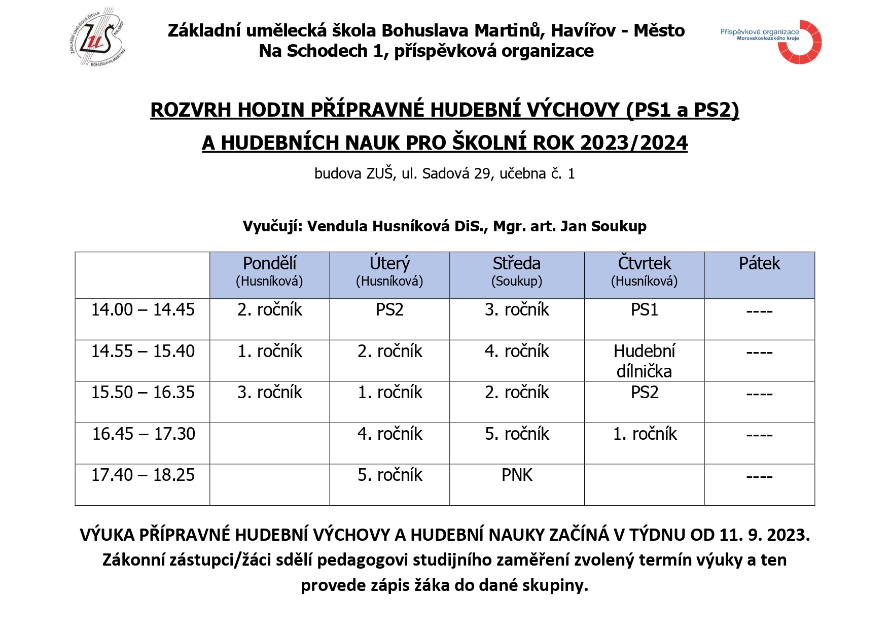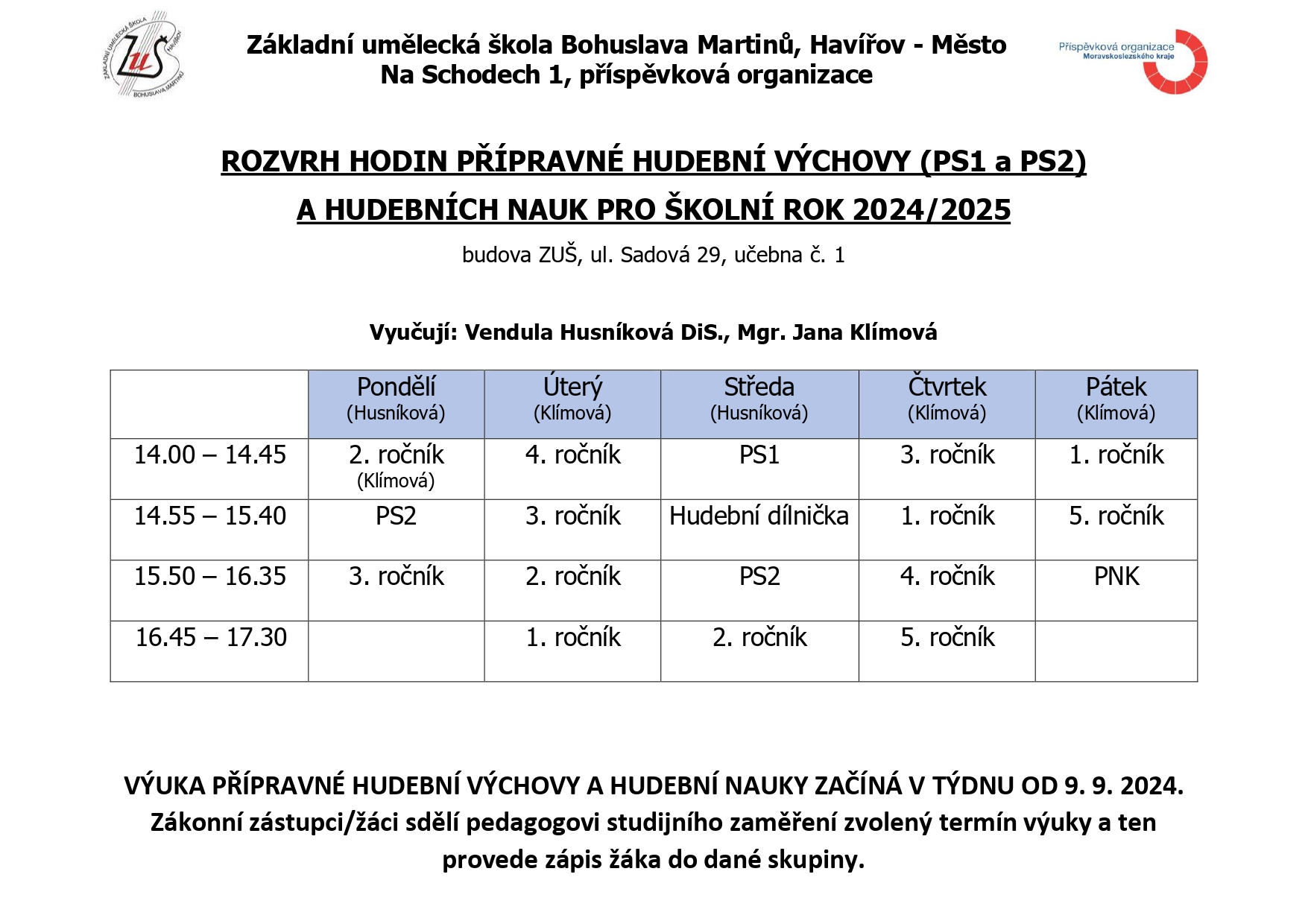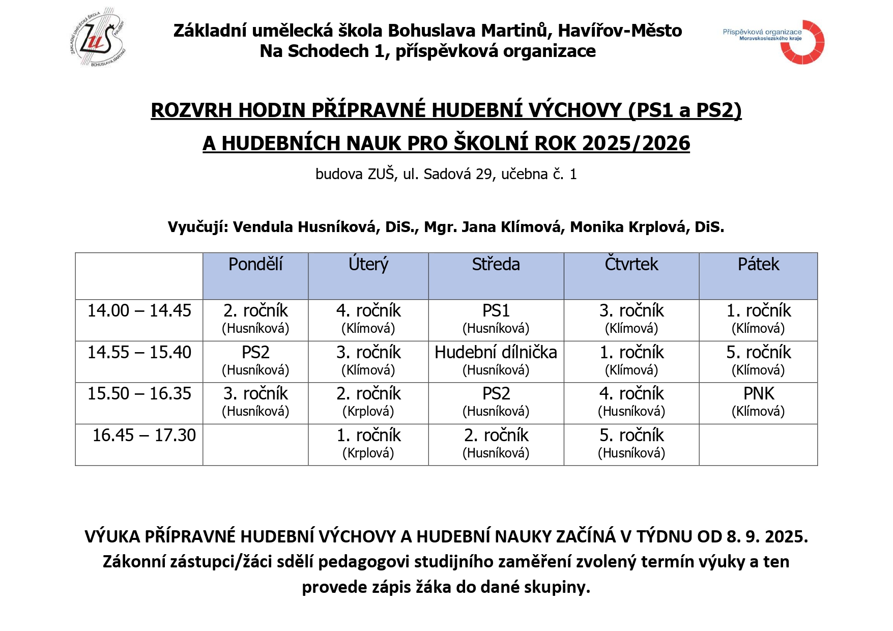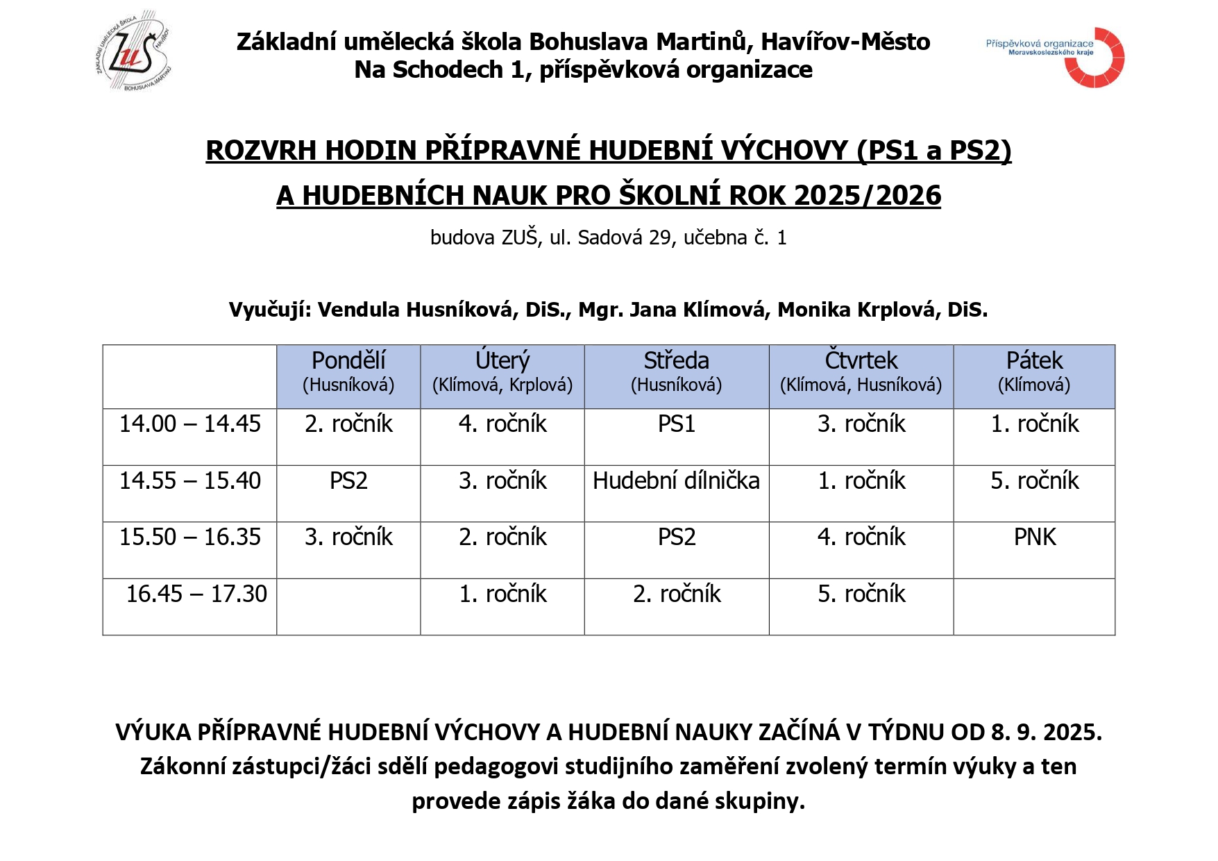 Rozvrh hodin HN a PHV 2025/2026 (Sadová)