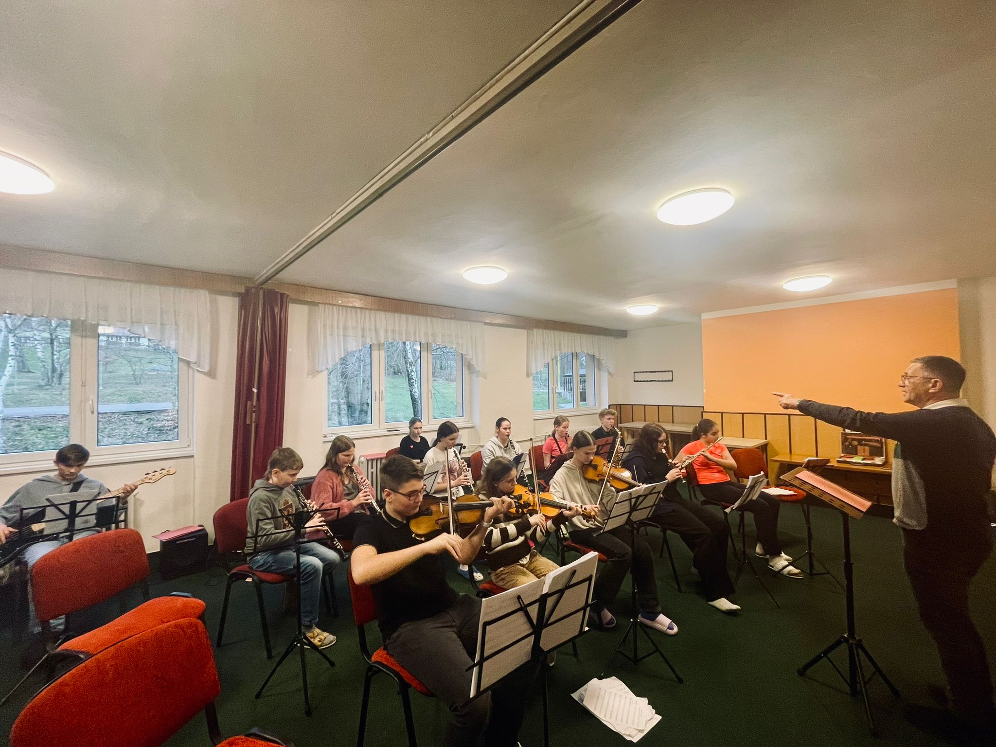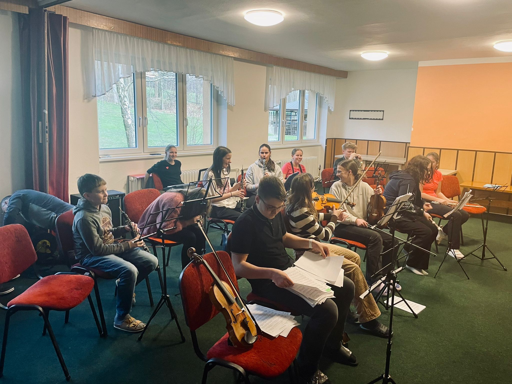 Ve dnech 22.-24.3.2024 náš taneční orchestr vyjel na soustředění na Morávku. Žáci pilně cvičili na krajskou soutěž jazzových souborů a tanečních orchestrů, která se bude konat v dubnu. Nechyběla však ani zábava. V sobotu dopoledne navštívila děti paní učitelka MgA. et. BcA Michele Boturová z literárně-dramatického oddělení. Odpoledne v rámci Světového dne vody žáci navštívili den otevřených dveří přehrady Morávka. Společně si prošli hráz zvenku i zevnitř a dozvěděli se spoustu zajímavostí. Soustředění orchestru se uskutečnilo za dotace statutárního města Havířov.