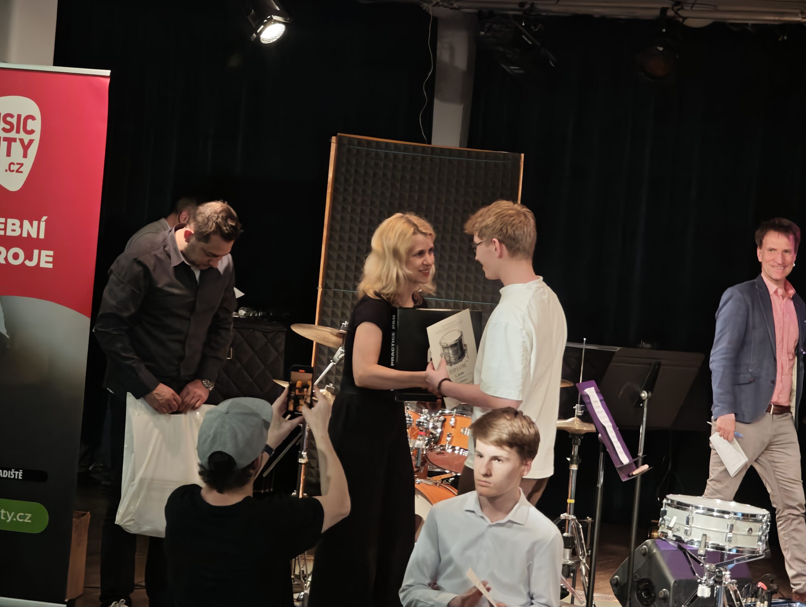 Dne 2.5.2025 se zúčastnil ústředního kola soutěže MŠMT v oboru bicí nástroje Matyáš Maceczek ze třídy pana učitele Vladimíra Matušínského. I přes vysokou úroveň všech soutěžících, se podařilo Matymu získat ve své kategorii 1. místo, ke kterému mu srdečně gratulujeme! ![]()