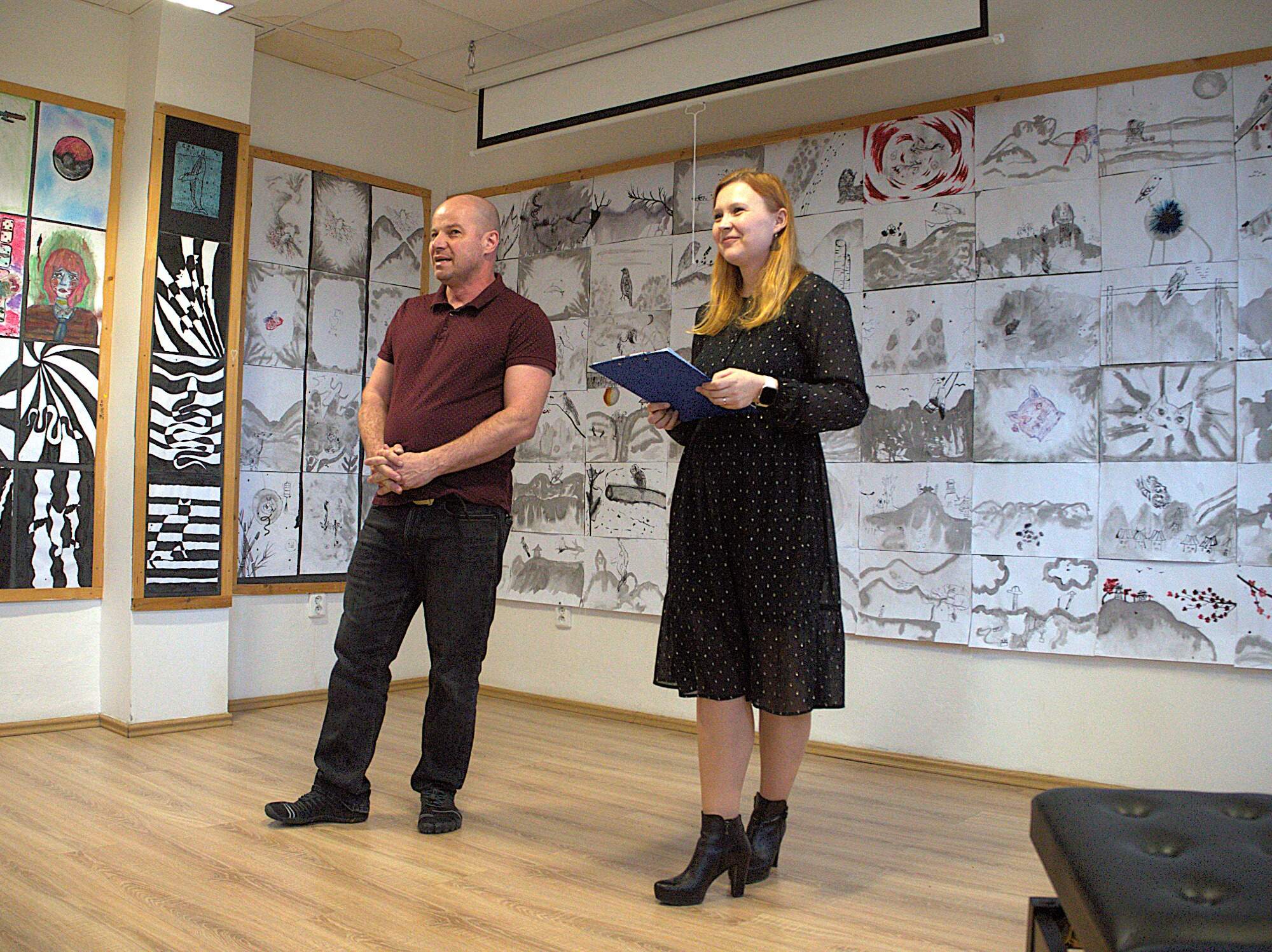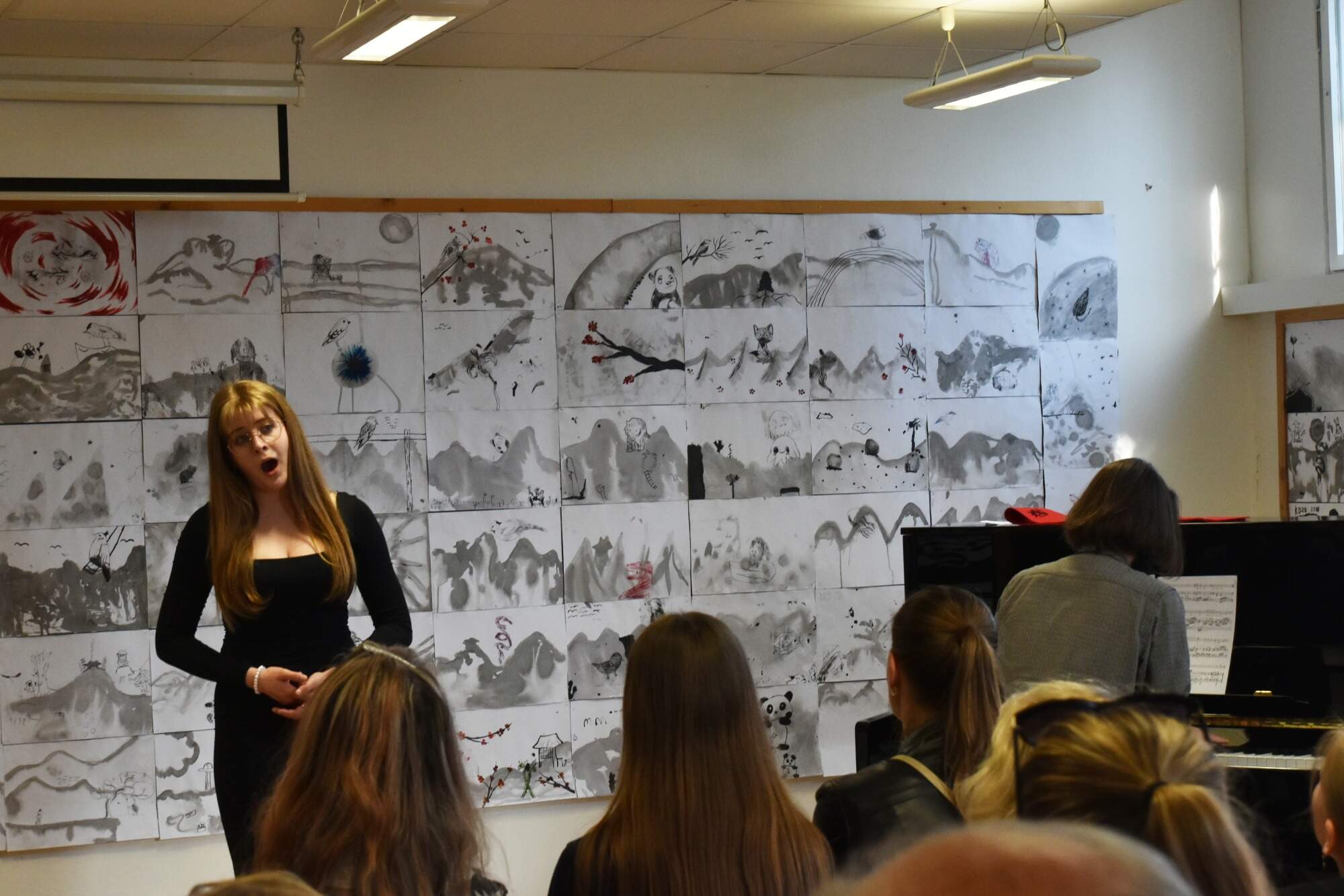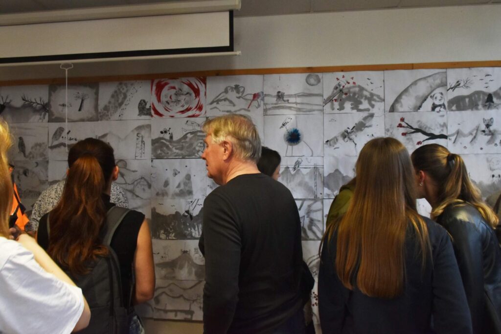 Ve čtvrtek 3. 4. 2025 proběhla ve školní galerii slavnostní vernisáž výstavy děl prací žáků tř. uč. MgA. Josefa Gerdy. Výstavy s názvem „Super výstava“ se zúčastnilo cca 100 lidí. Na vernisáži vystoupily žákyně hudebního oddělení: Ema Rylková a Johana Žofie Muchová ze třídy Oldřišky Honsové. K vidění byly speciality jako reverzní tisk z výšky na monotypovém podkladu – čili efekt kombinací dvou tisků. Dále koláže inspirované Jiřím Kolářem nebo grafickou techniku tisku z hloubky „suchá jehla“ na podklady malované čínskou tuší. Zde šlo o zúročení, zakončení a kombinování technik z tří lekcí. Veliký úspěch sklidily také optické klamy malované tuší inspirované M. C. Escherem. A celou paletu grafických technik dovršil fenomenální „Ledový průtisk“ žehlený přes modrý uhlový papír. Tento školní rok žáky ve výuce ještě čeká glazování vypálené keramiky a potisk triček technikou linorytu. Děkujeme za Vaši účast.