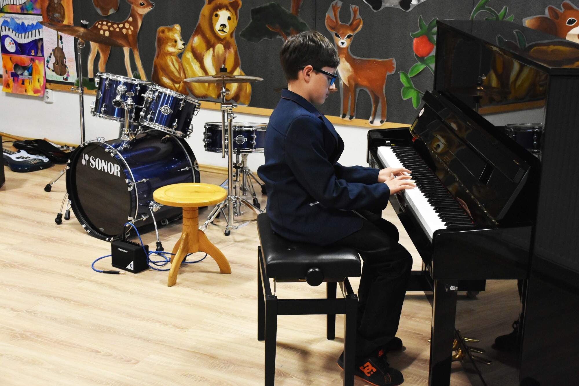 Děti vidí svět jinak – s fantazií, citem a odvahou tvořit. Současná výstava Barvy v pohybu v Galerii A. Jiráska 2 je pestrou přehlídkou výtvarných a fotografických děl žáků p. učitelky L. Klezla, ve kterých se barva proměňuje v příběh, pohyb a emoci. K vidění jsou koláže, expresivní i realistické práce, animace i fotografie – výstava tak představuje celou škálu výtvarných technik a přístupů, které děti zkoumaly s radostí a vlastním výtvarným jazykem. Vernisáž, která proběhla 6. května v 17:00, se nesla v živé a srdečné atmosféře. O hudební doprovod se postarali dva mladí klavíristé a poté kapela malých hudebníků, kteří rozezvučeli prostor rockovými rytmy na bicí a kytary. Všichni účinkující hudebníci jsou zároveň žáky výtvarného i hudební oboru – a tak mohli na vernisáži nejen vystavit svá díla, ale i hudebně doprovodit celou výstavu.