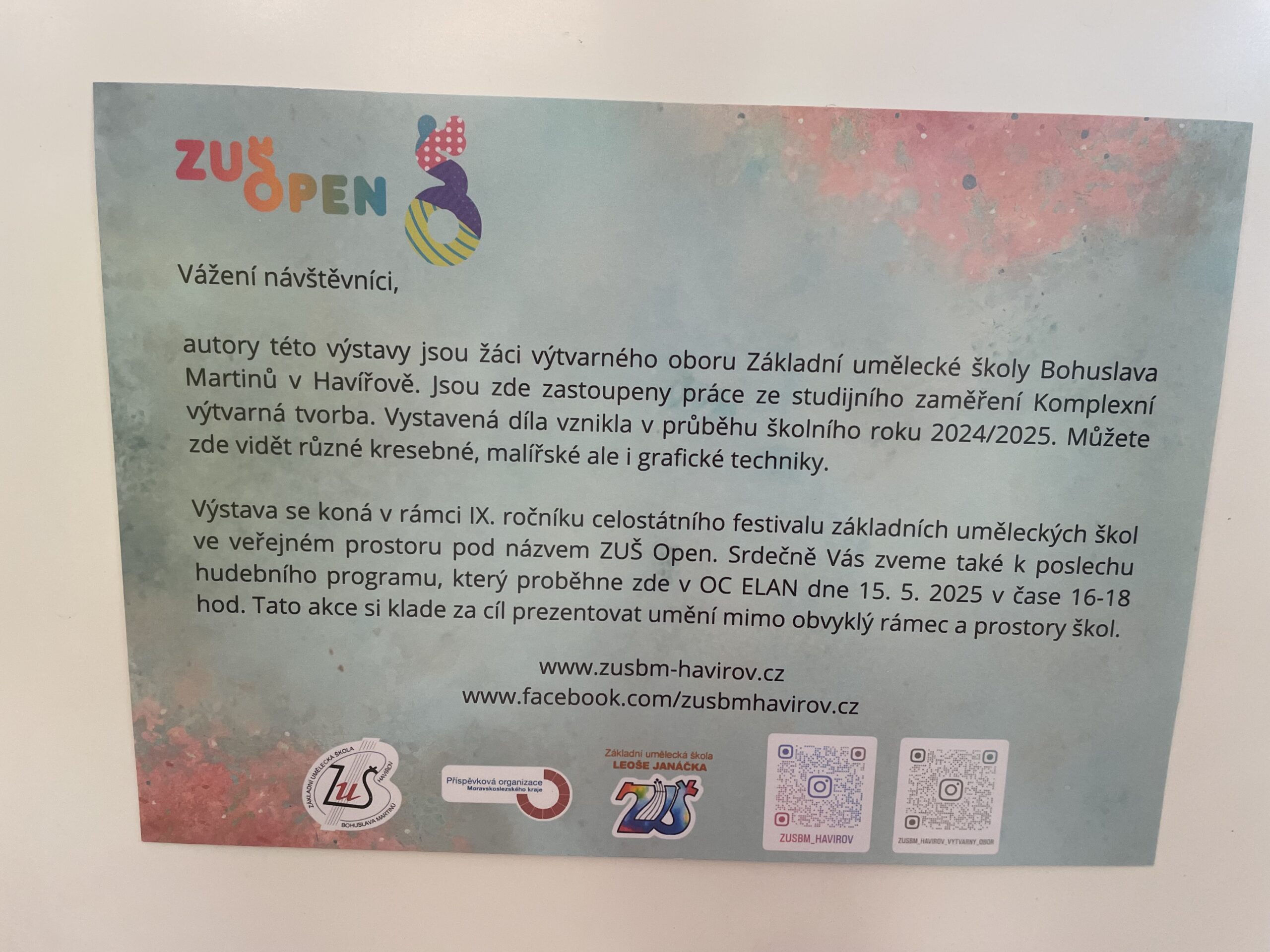 Právě probíhá výstava prací našich žáků v OC ELAN… Zastavte se a zhlédněte