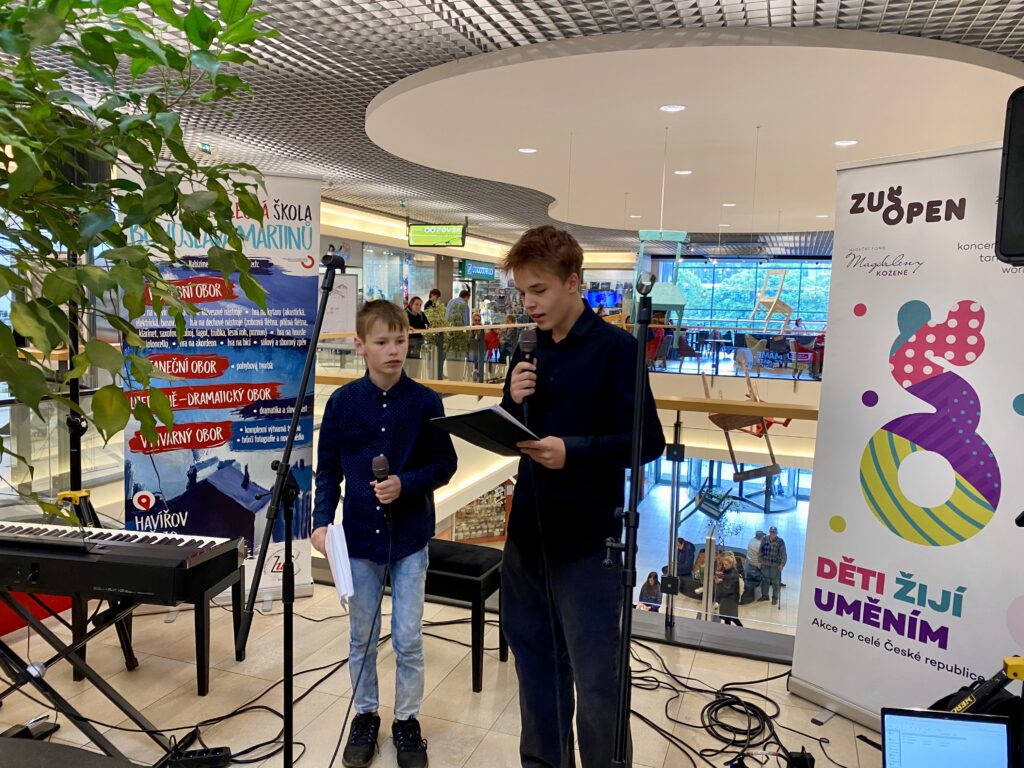 Během odpoledne se mohli návštěvníci zaposlouchat do rozmanitých hudebních čísel v podání žáků obou škol. Naším programem doprovázeli žáci literárně-dramatického oboru, kteří se zhostili role moderátorů.