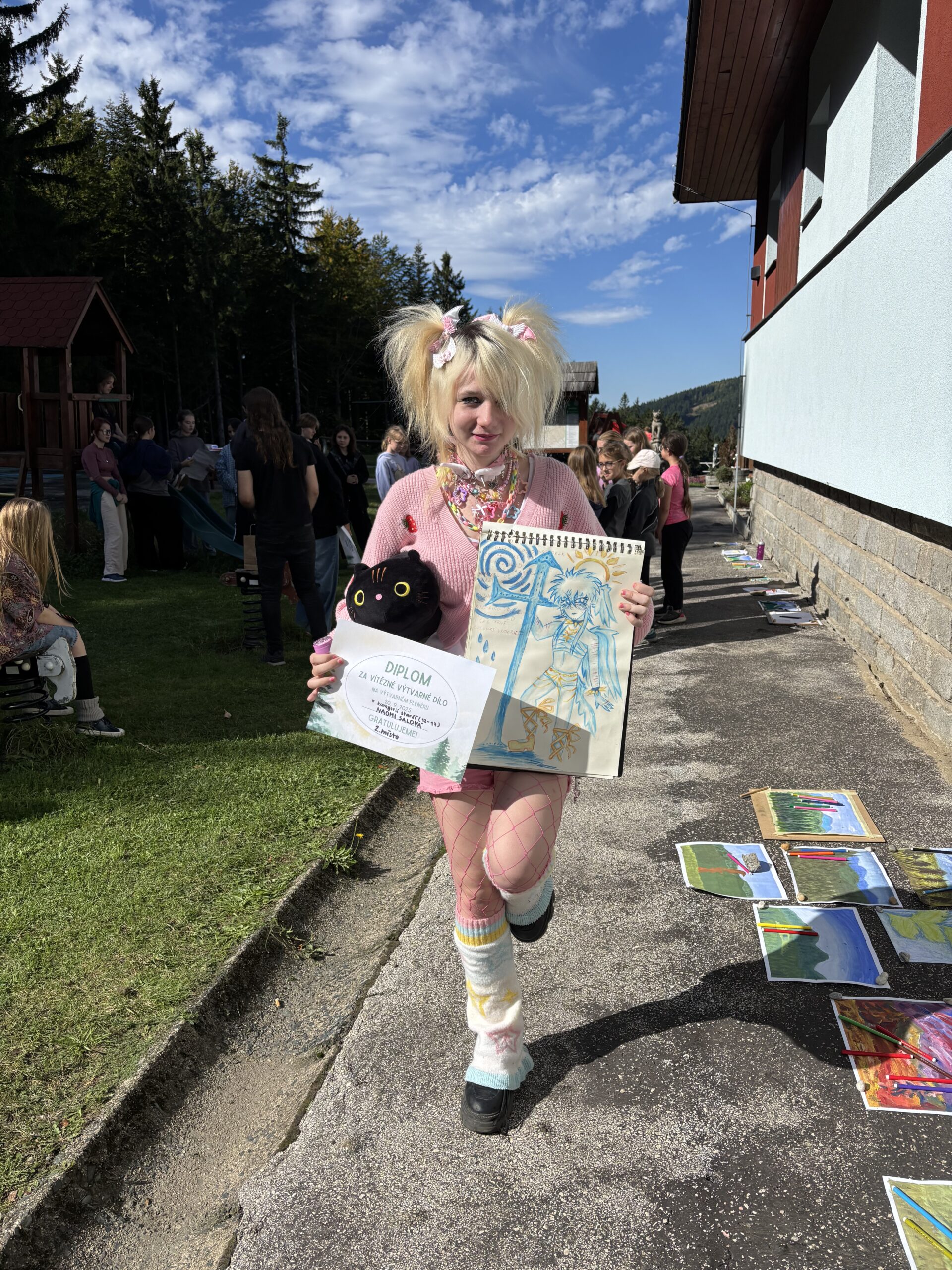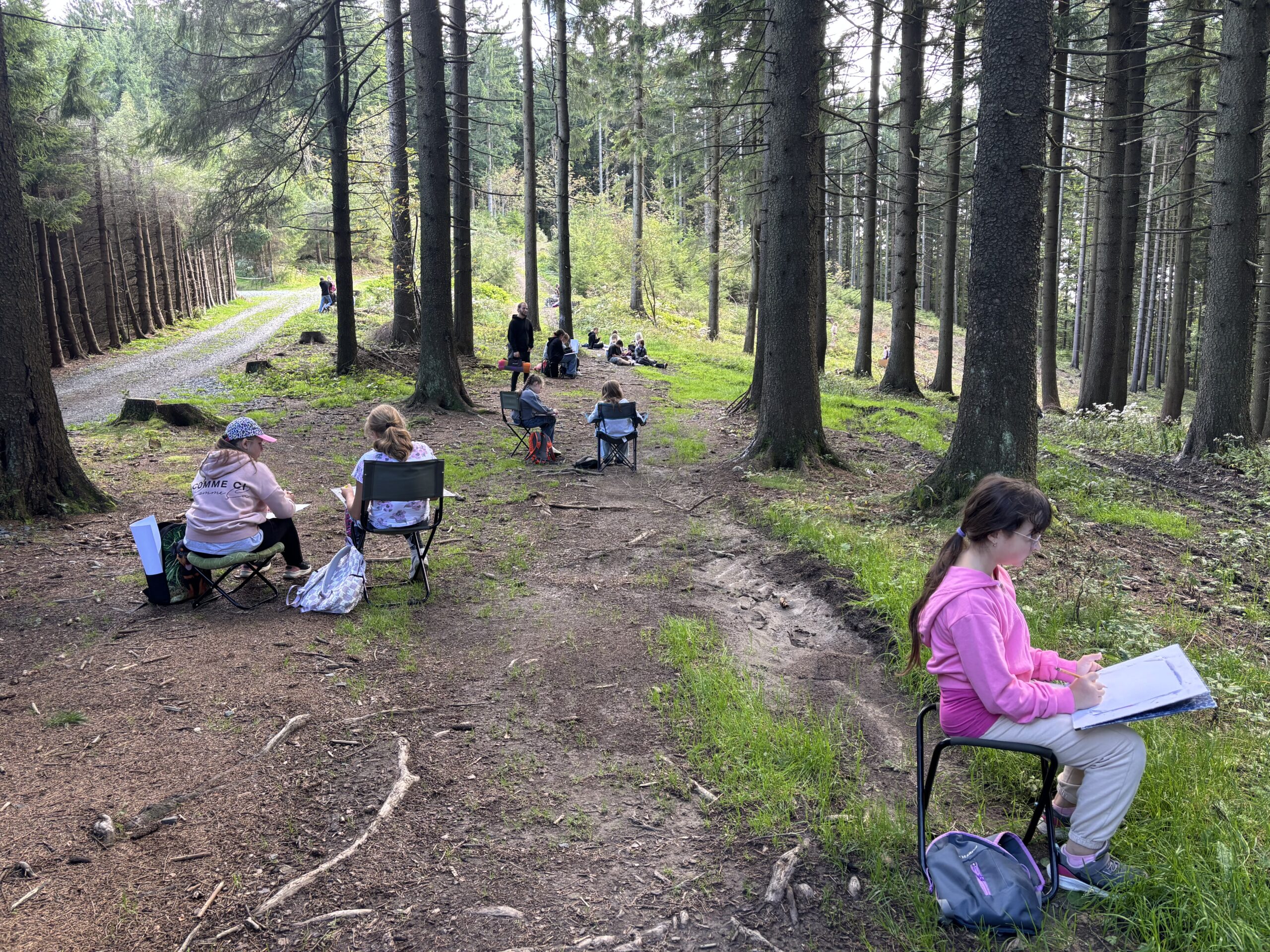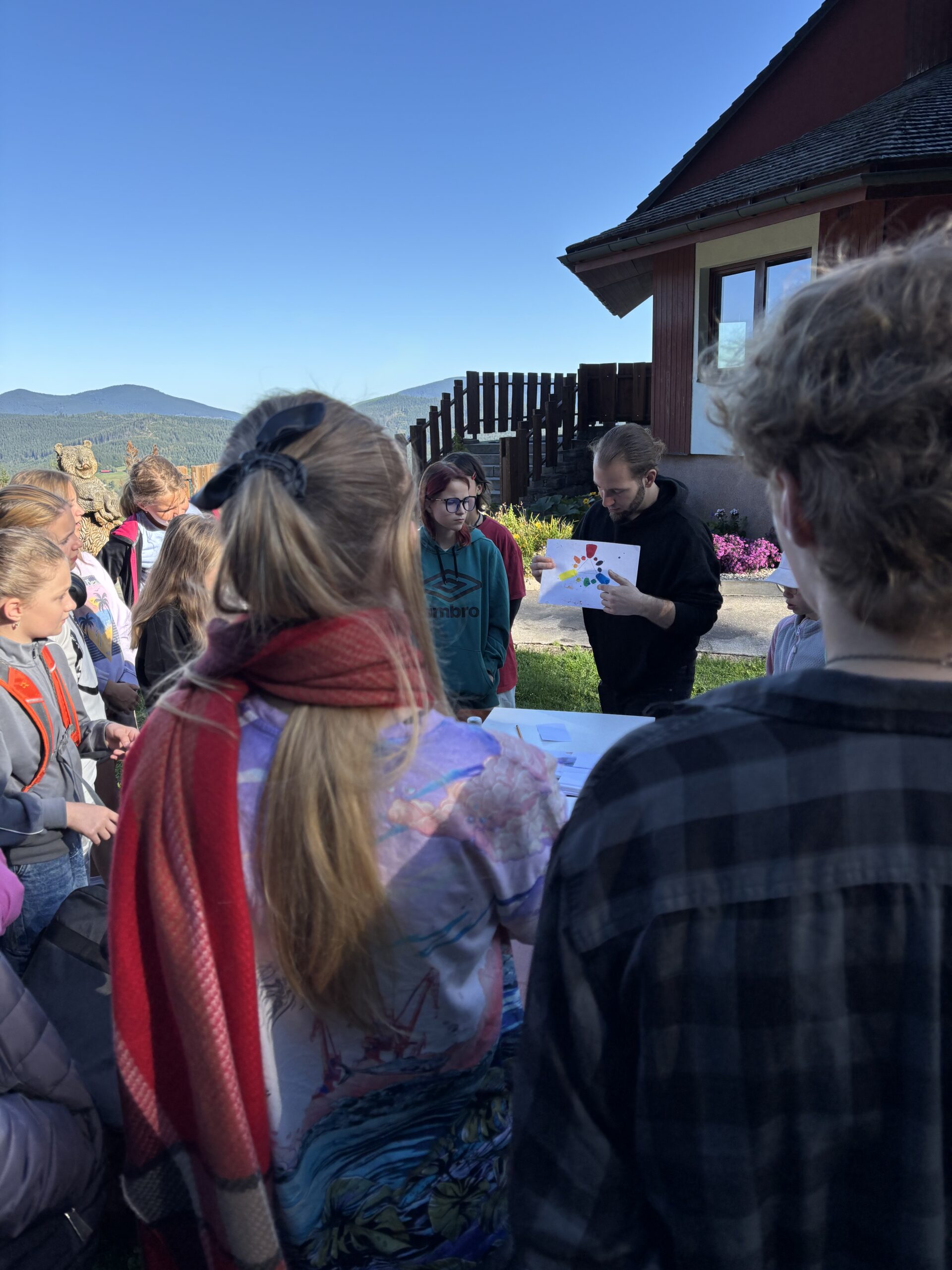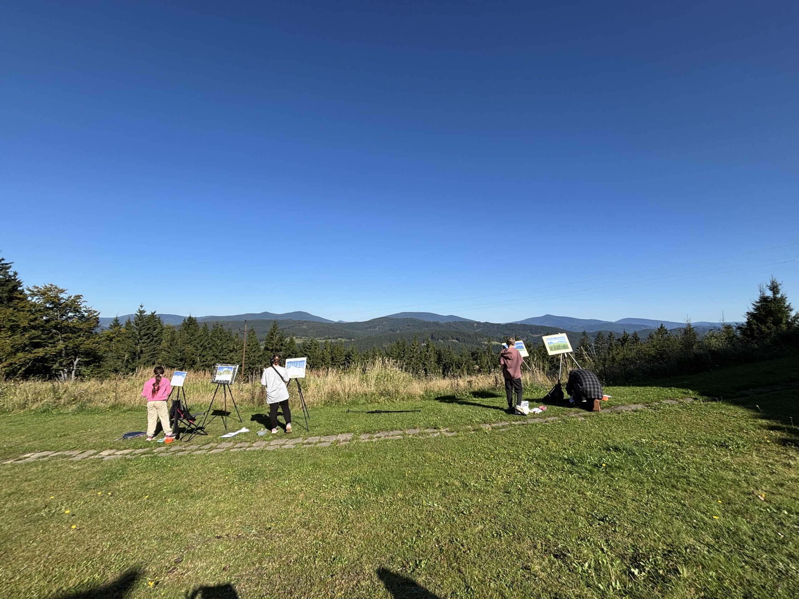 O víkendu 19. – 21. 9 .2025 se žáci výtvarného oboru vydali na plenér s paní učitelkou Mgr. Anetou Patrňákovou a Mgr. et MgA. Vlastimilem Nenadálem do horského hotelu Sůkenická. Čekaly nás tři dny plné kreslení, malování a času stráveného v přírodě. Hned po příjezdu jsme vyrazili na procházku a žáci se pustili do prvních studií v přírodě. V sobotu jsme se věnovali tématu míchání barev a zachycení vzdušné perspektivy v krajině. Slunečné počasí nám přálo, a tak jsme mohli tvořit venku od rána až do večera. Žáci si zkusili i kresbu figury, kresbu detailu přírodnin nebo hravé tvoření z nalezených přírodních materiálů. Součástí programu plenéru bylo také hodnocení a úklid pokojů. Na závěr víkendu jsme uspořádali malou výstavu a hlasování o nejlepší díla. Byl to víkend plný tvořivé energie, společného zážitku a dobré nálady. Všem žákům patří velká pochvala a už teď se těšíme na další plenér!