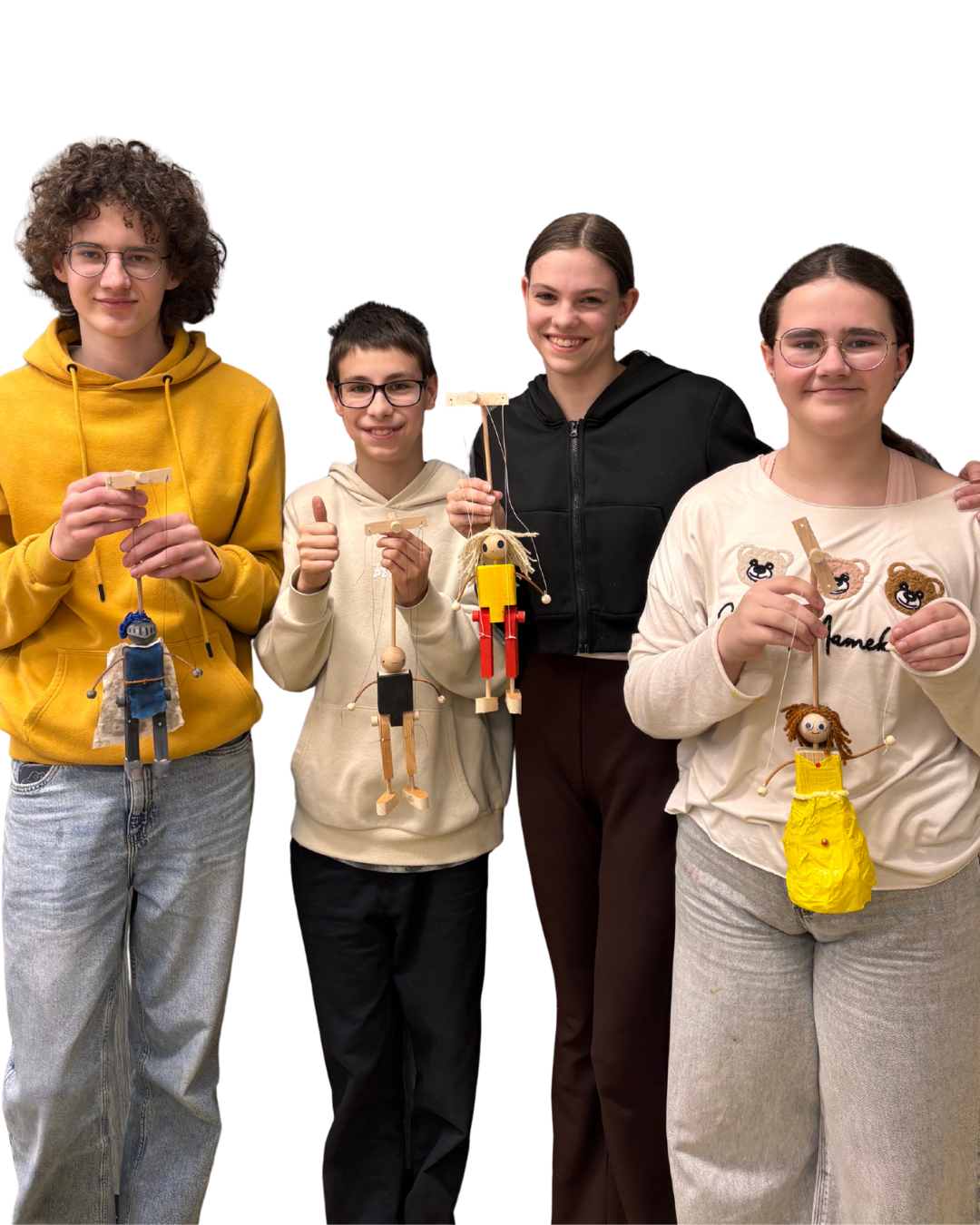 Poté se pustily do vlastní tvorby – každý si navrhl a vyrobil svou pohyblivou dřevěnou loutku. Na závěr si všichni svůj originální výrobek odnesli domů.
